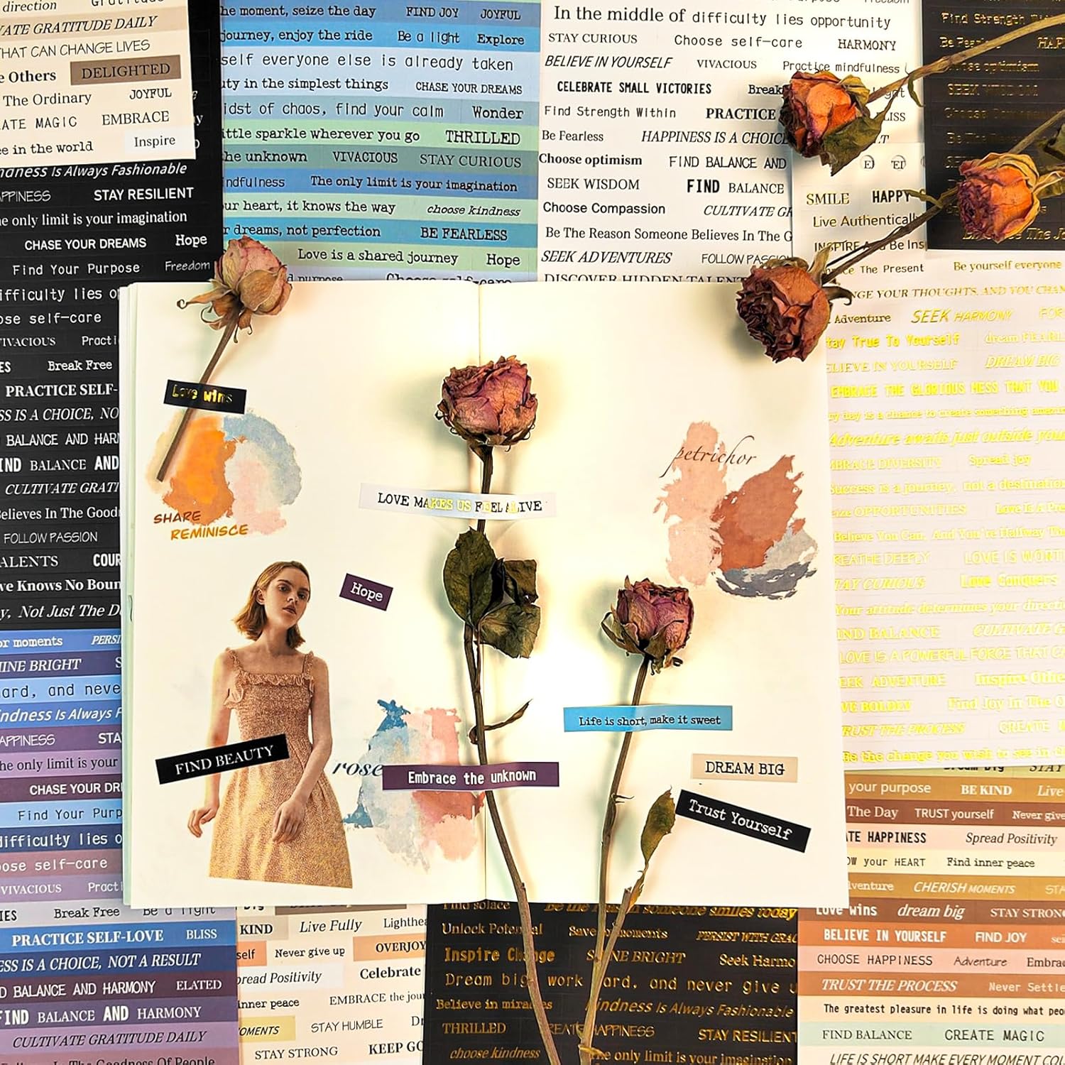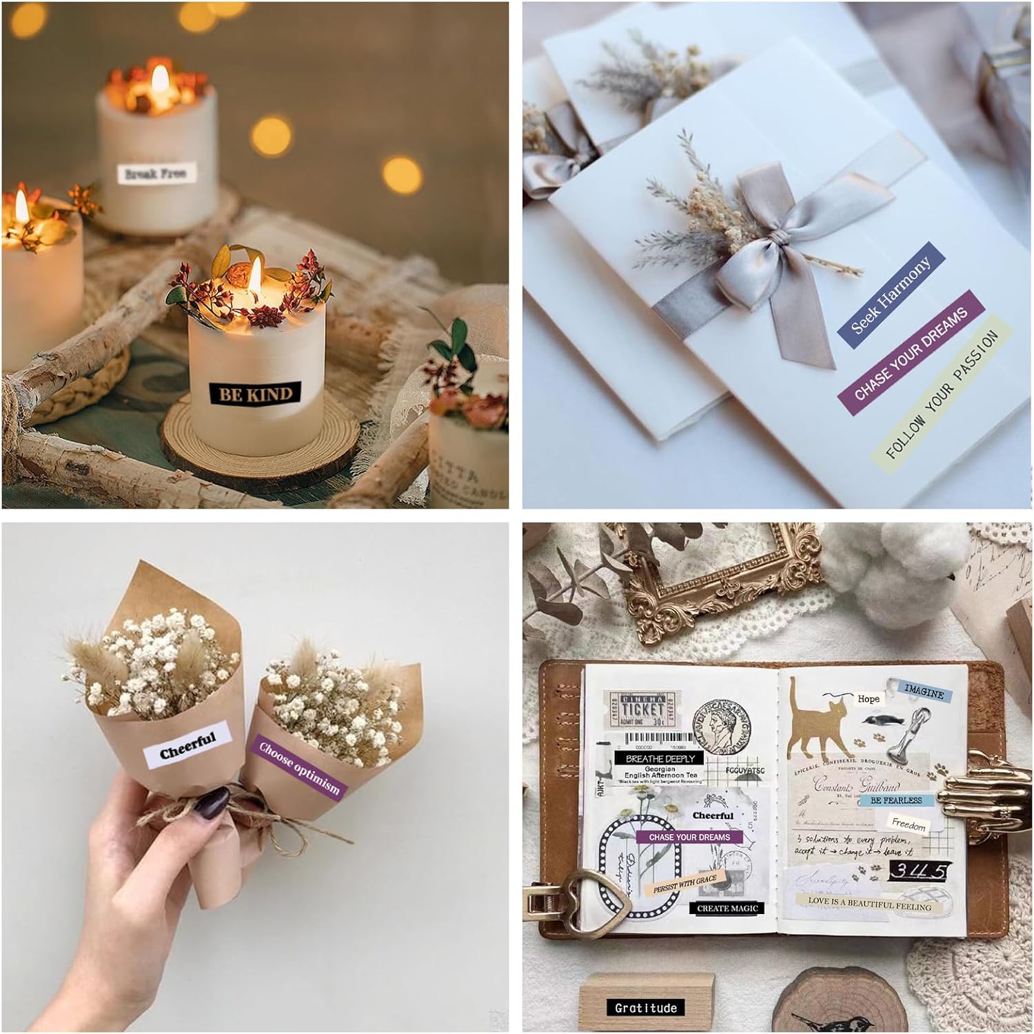 - 2.Diverse Design: Including 7 color tones, black on white, white on black, gold on black, gold on white, beige and brown tones, cerulean and purple tones. This inspirational sticker pad contains a large amount of motivational phrases, words, and sayings with different fonts and sizes, perfect for adding some inspiration to your scrapbook pages. Stickers with shiny gold foil or colorful uplifting messages to keep you motivated throughout the day.