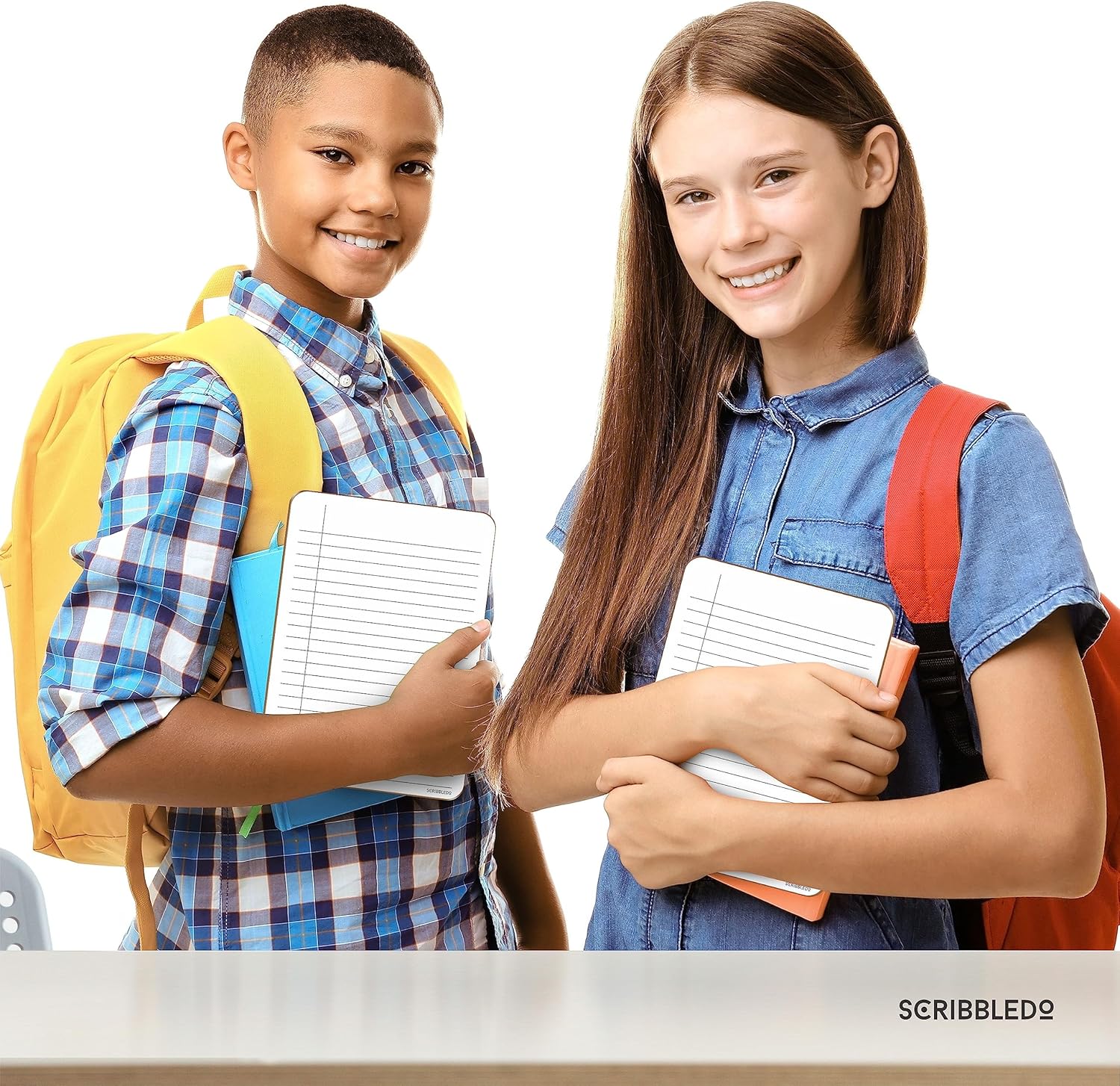 SCRIBBLEDO Dry Erase 5"x7" Mini Notebook College Ruled Lined Board 2 Pack Reusable Erasable Writing Note Pad Lapboard Blank Whiteboard on Reverse for Desk