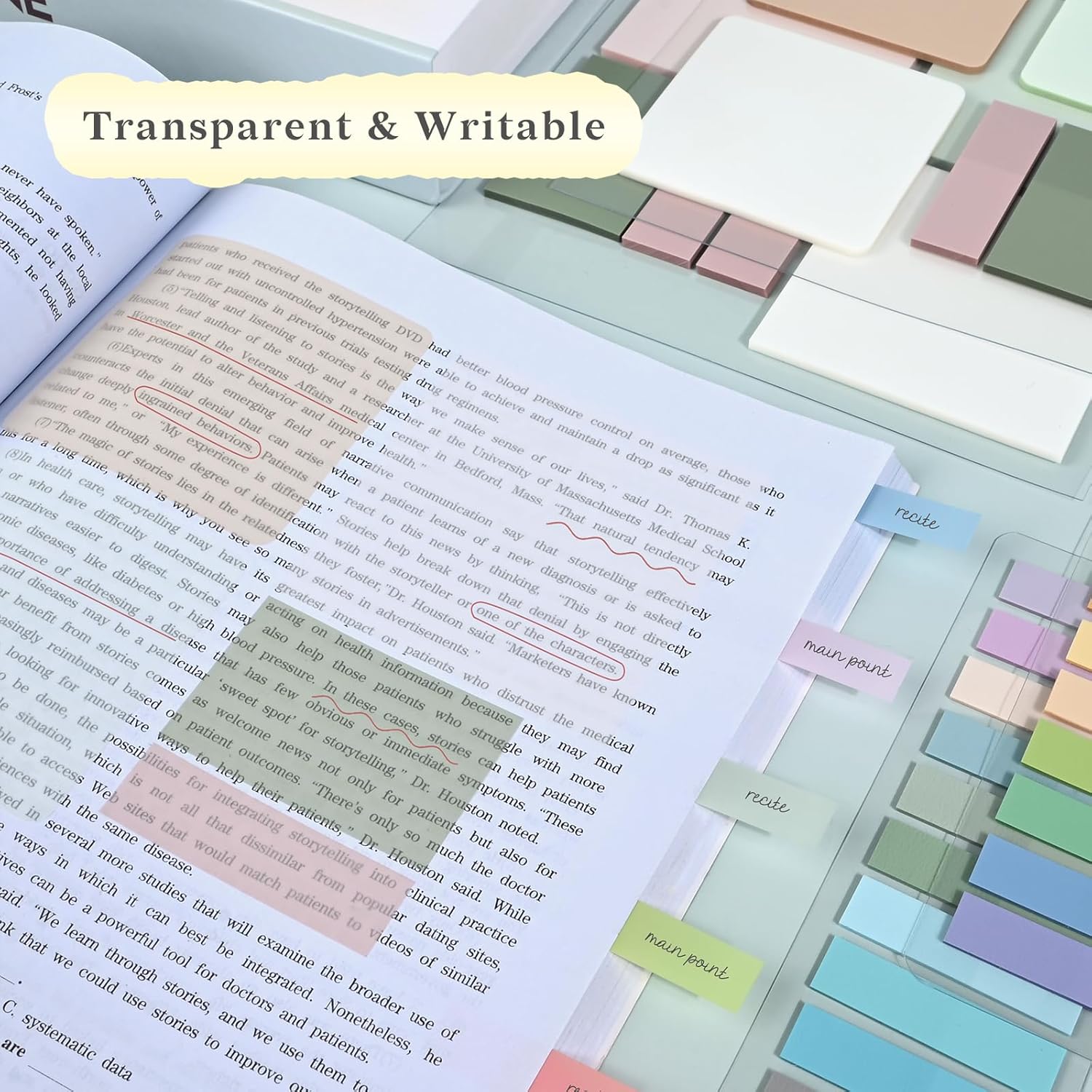 - What Will You Get: 300 Sheets transparent sticky notes( 3x3 inch ), 100 Sheets green translucent sticky notes(2.3x1.45 inch), 200 Sheets pink translucent sticky notes(2.3x0.7 inch), 400 Sheets morandi pastel different colors book tabs(1.8x0.4 inch), sufficient in quantity, enough to be used for a long time,Translucent sticky notes meet your various note-taking needs.