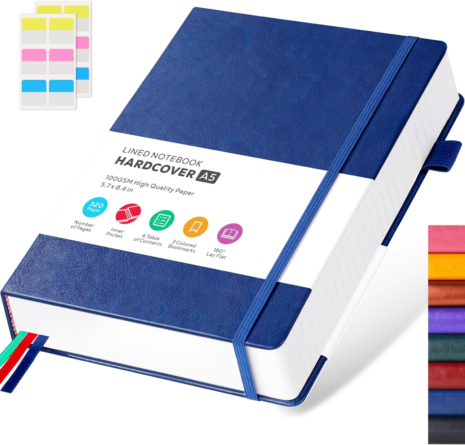 Thick Notebook Journal, Leather A5 Notebooks College Ruled 320 Pages Lined Paper Notebooks, Hardcover Journal Notebook for Writing Women and Men, 5.7'' X 8.4'', Dark Blue
