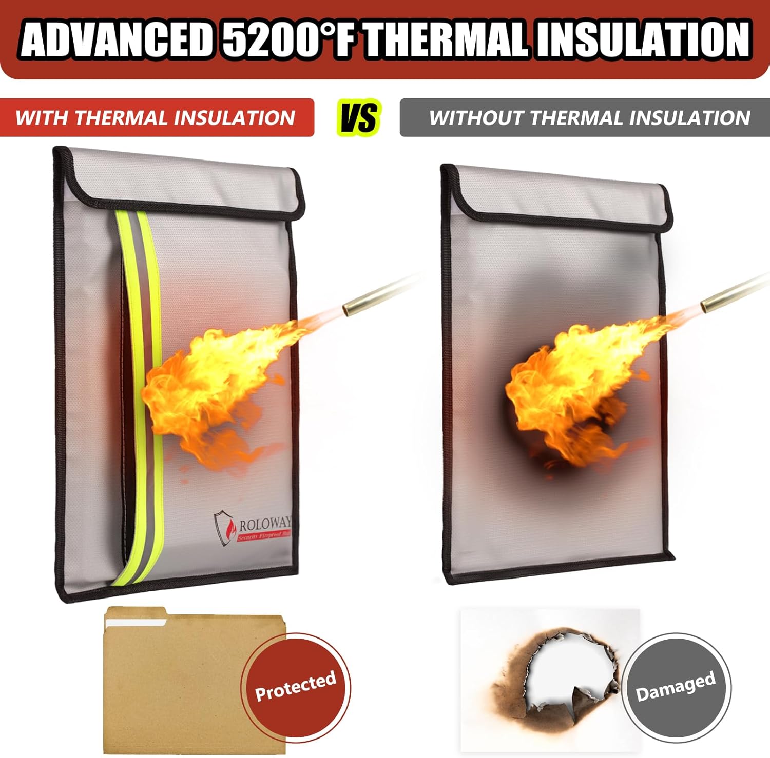 - [UPGRADED FIREPROOF DOCUMENT BAG – 5200°F HEAT INSULATED]: Our Upgraded Fireproof Bag is equipped with 10-LAYER Fire Resistant & Heat Insulation Structure. This fireproof document bag offers exceptional heat resistance, withstanding temperatures up to 5200°F for a certain period. Enhanced with silicone coating and secure hook & loop closure, it provides additional water resistance. Recommended by firefighters, this document safe fireproof bag ensures the safety of your valuables.
