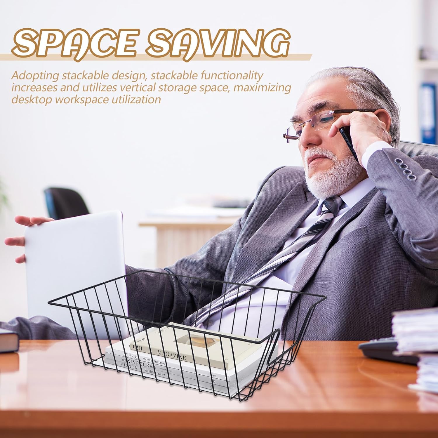Yeaqee 6 Pcs Letter Tray Wire Paper Trays Stackable File Desk Organizer Metal File Paper Holder Basket for Desk Desktop Letter Storage for Office Home Classroom School(17'' x 12'' x 5 '',Black)