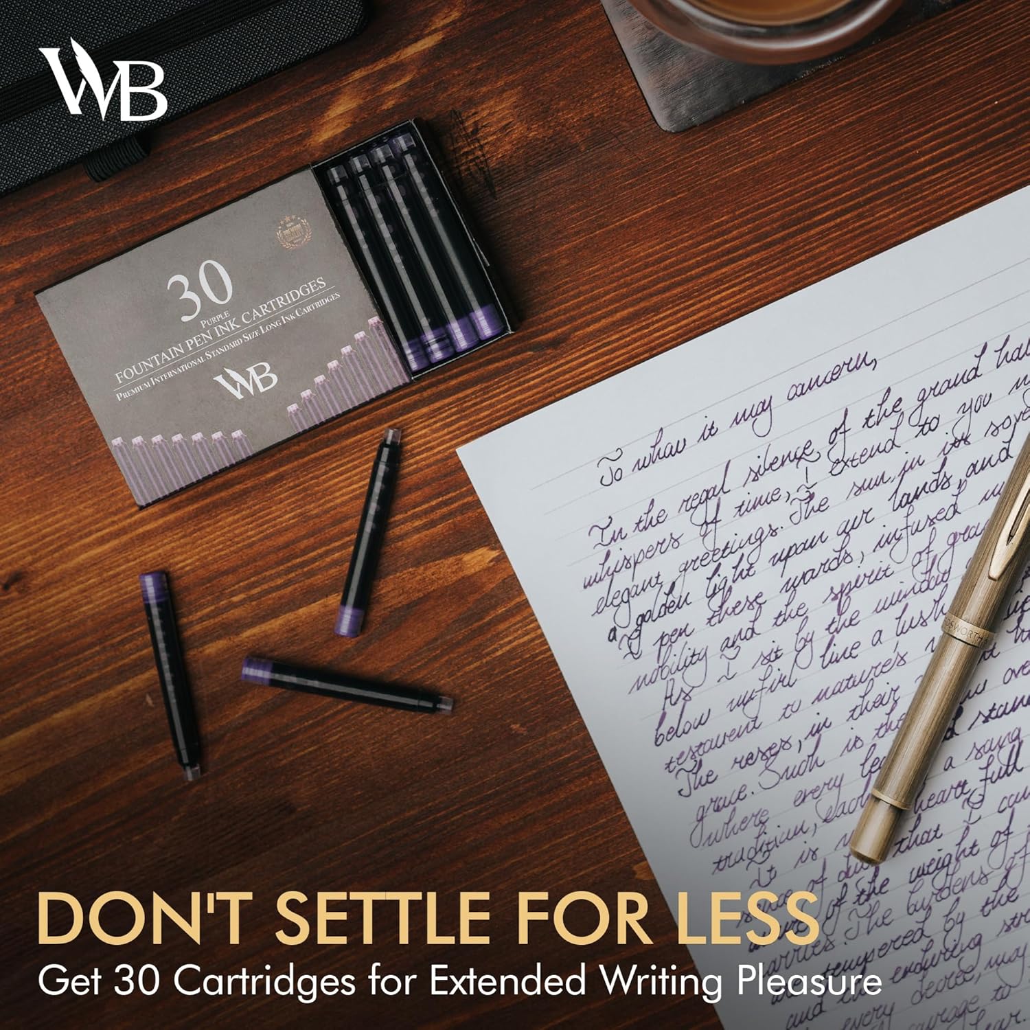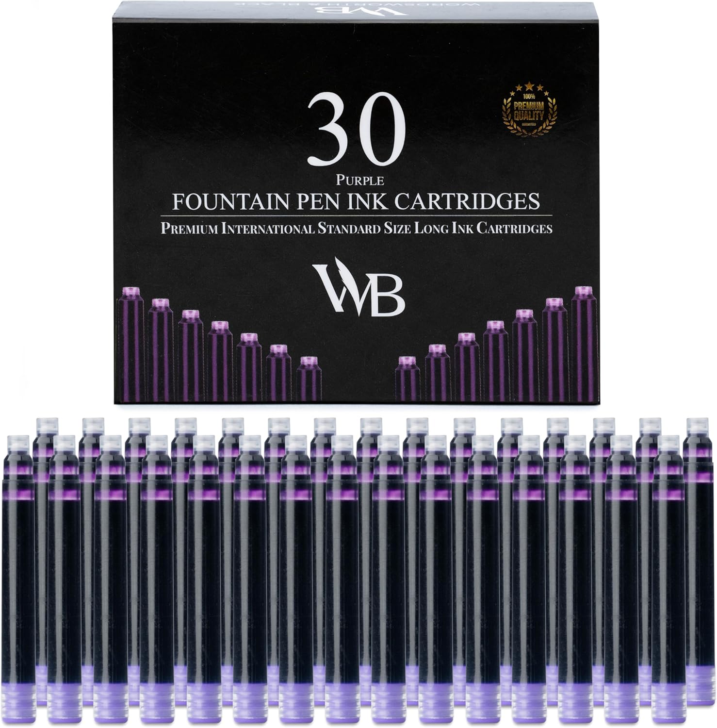 Wordsworth & Black Fountain Pen Ink Refills - Set of 30 Purple Ink Cartridges - International Standard Size - Length APPR 2.04 Inch - Base Diameter APPR 0.24 Inch - Disposable and Generic