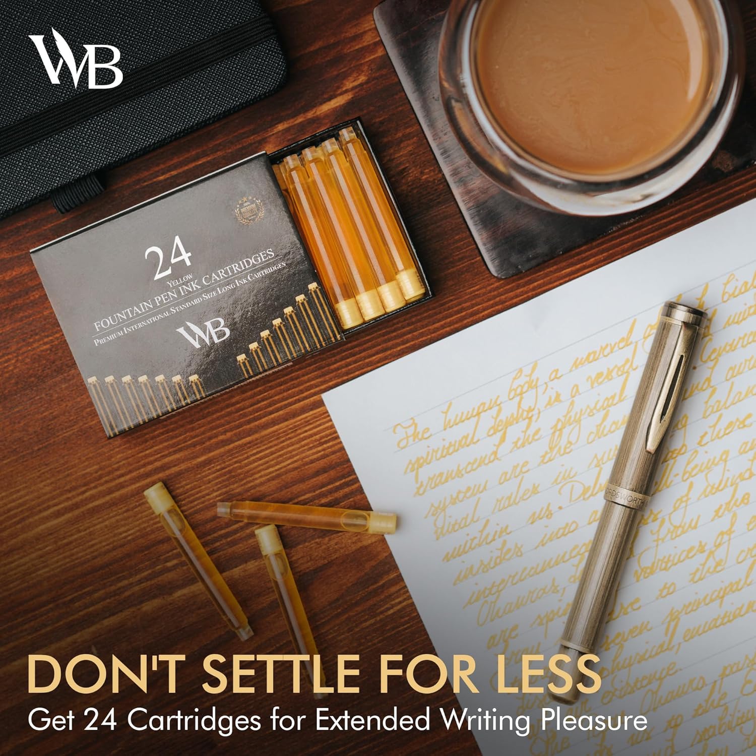 Wordsworth & Black 24 Pack Fountain Pen Ink Refills - Set of 24 Yellow Ink Cartridges - International Standard Size - Length APPR 2.3" - Base Diameter APPR 0.24" - Disposable and Generic