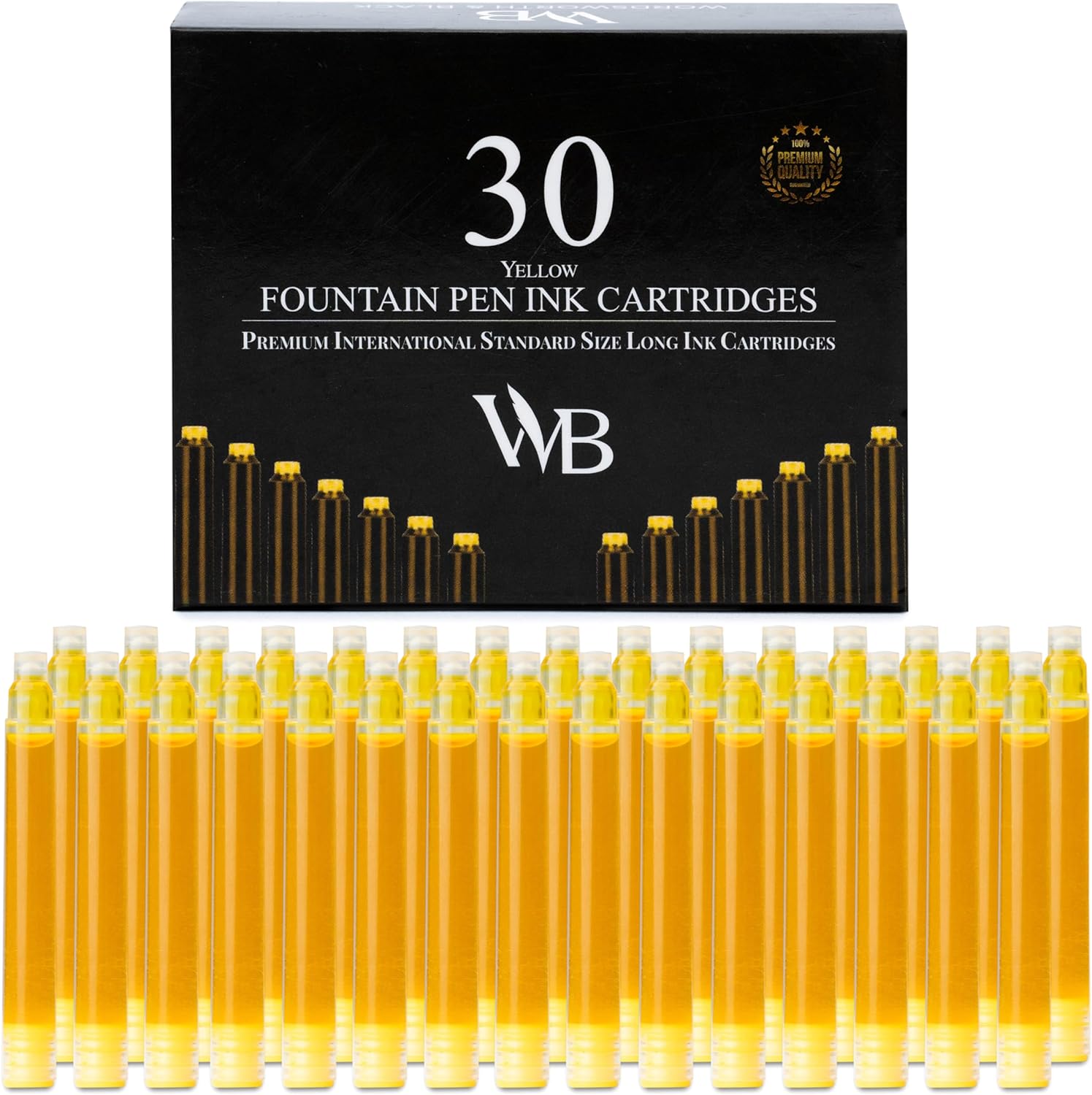 Wordsworth & Black Fountain Pen Ink Refills - Set of 30 Yellow Ink Cartridges - International Standard Size - Length APPR 2.3" - Base Diameter APPR 0.24" - Disposable and Generic