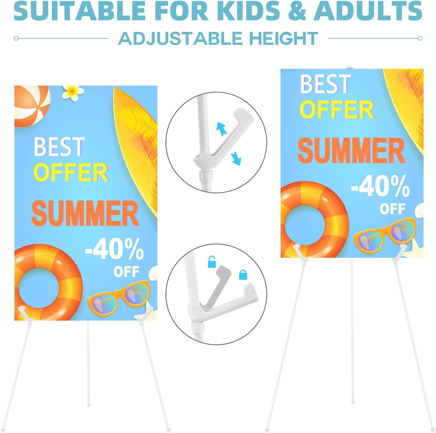 - Adjustable Height: Easily adjust the height with slide clips to suit posters, foam boards, or signs β great as a floor easel for art shows, presentations, or weddings