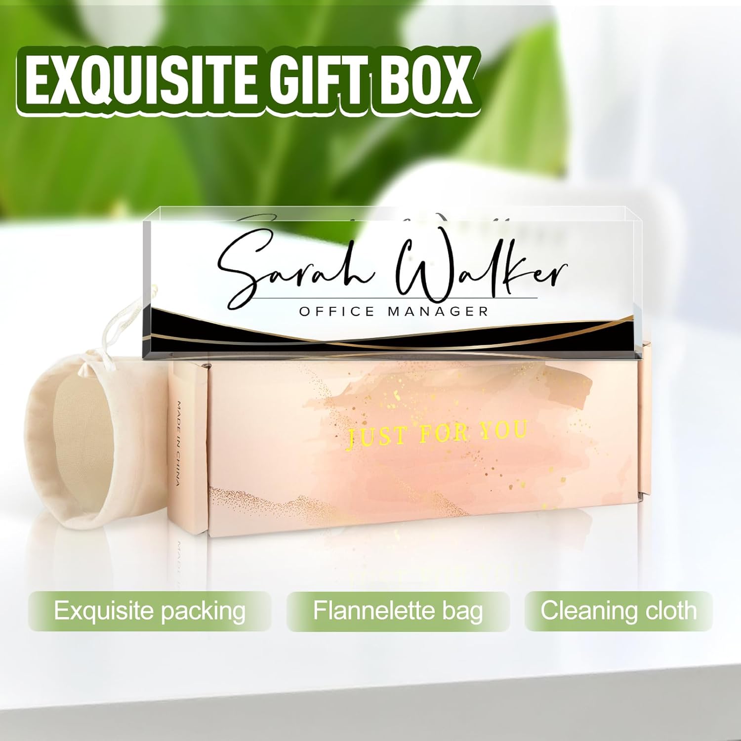- ✨Personalized Acrylic Desk Name Plate: It's very easy to customize, you only need to choose your favorite design style, and then enter your name/title/company name/good wishes, whatever you want to display. But make sure to enter your custom text the way you want it (uppercase vs. lowercase, full title vs. abbreviation, etc.). Please make sure you write it correctly, we have professional designers to design it, you will be amazed how professional your finished nameplate looks!