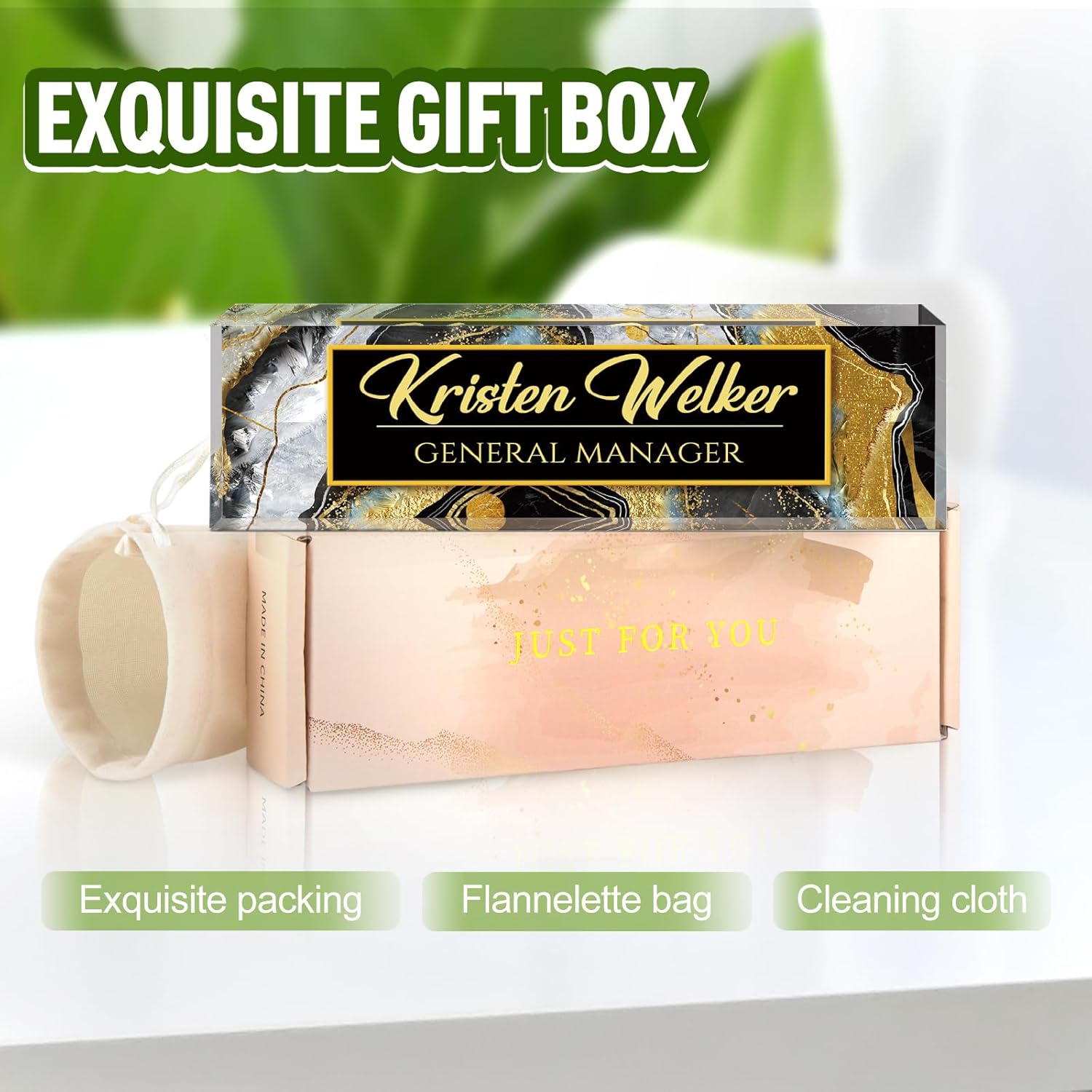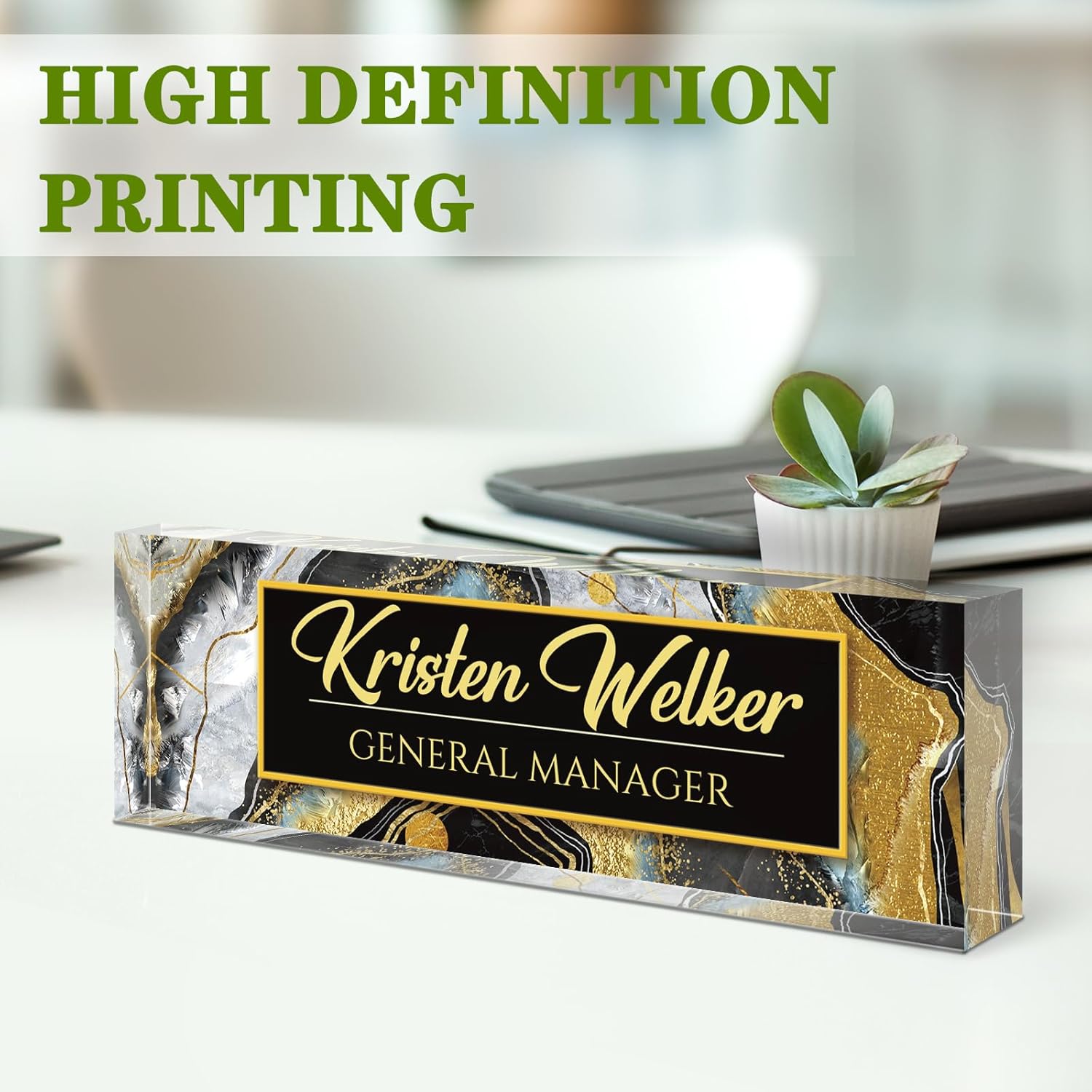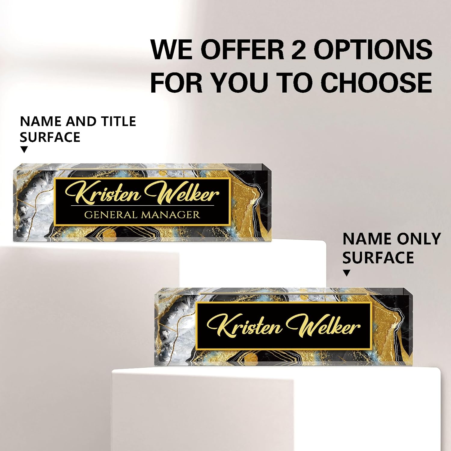 - ✨Personalized Acrylic Desk Name Plate: It's very easy to customize, you only need to choose your favorite design style, and then enter your name/title/company name/good wishes, whatever you want to display. But make sure to enter your custom text the way you want it (uppercase vs. lowercase, full title vs. abbreviation, etc.). Please make sure you write it correctly, we have professional designers to design it, you will be amazed how professional your finished nameplate looks!