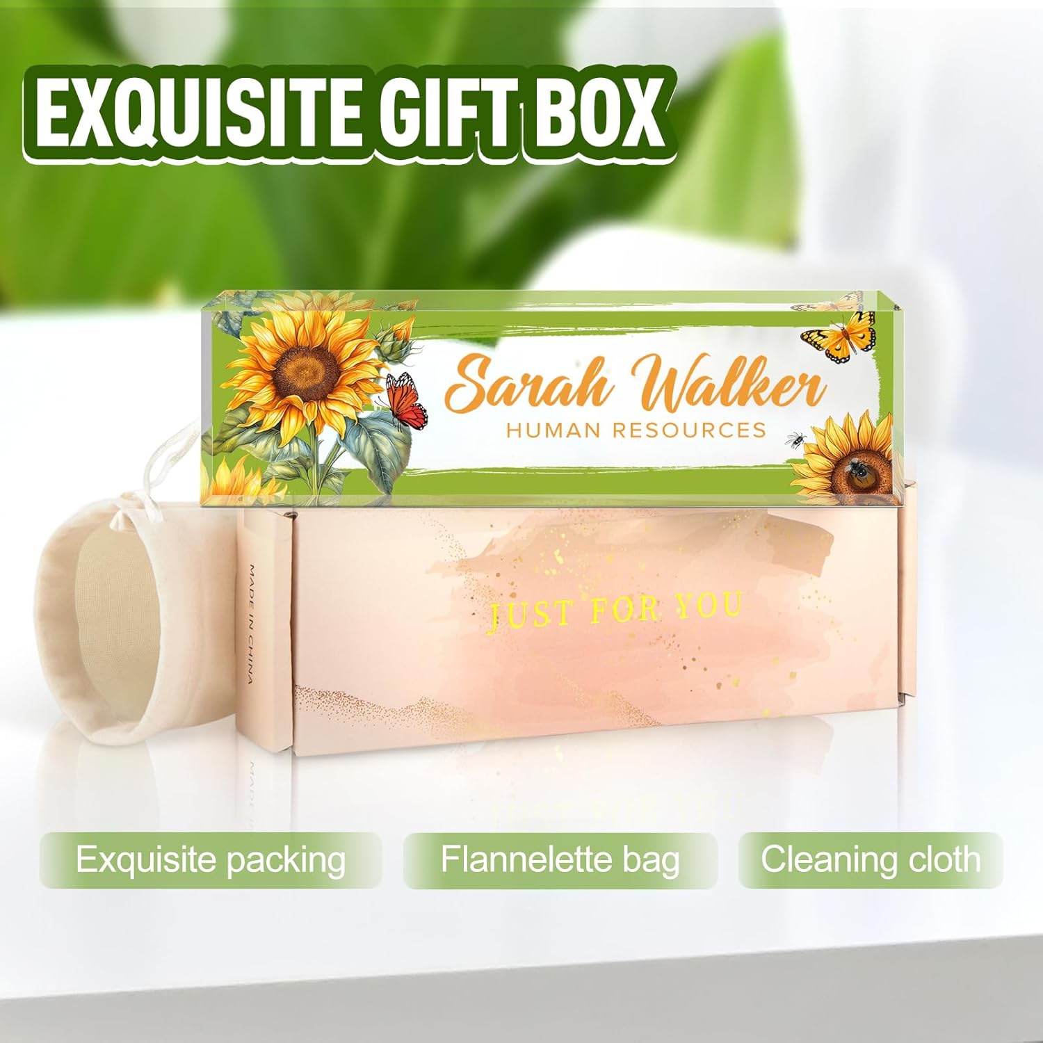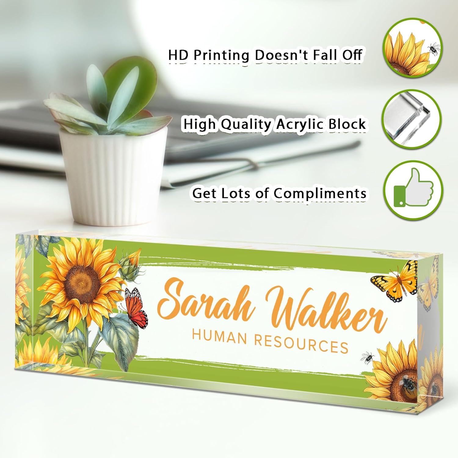Name Plate for Desk, Desk Name Plate Personalized, Office Decor for Women Men, Acrylic Desktop Accessories, Office Appreciation Gifts for Boss Social Workers Nurse Teacher Employee (Sunflowers)