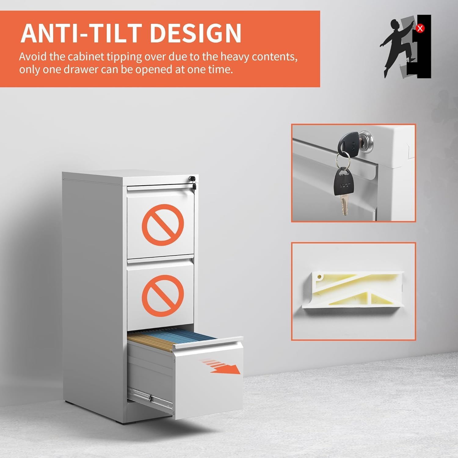 - 【Secure & Anti-tilt Design】Our office filing cabinets with 3 drawer feature a locking mechanism and anti-tip feature. When one drawer is opened, the interlocking drawer system prevents the other drawers from opening, preventing tip-overs and increasing safety.