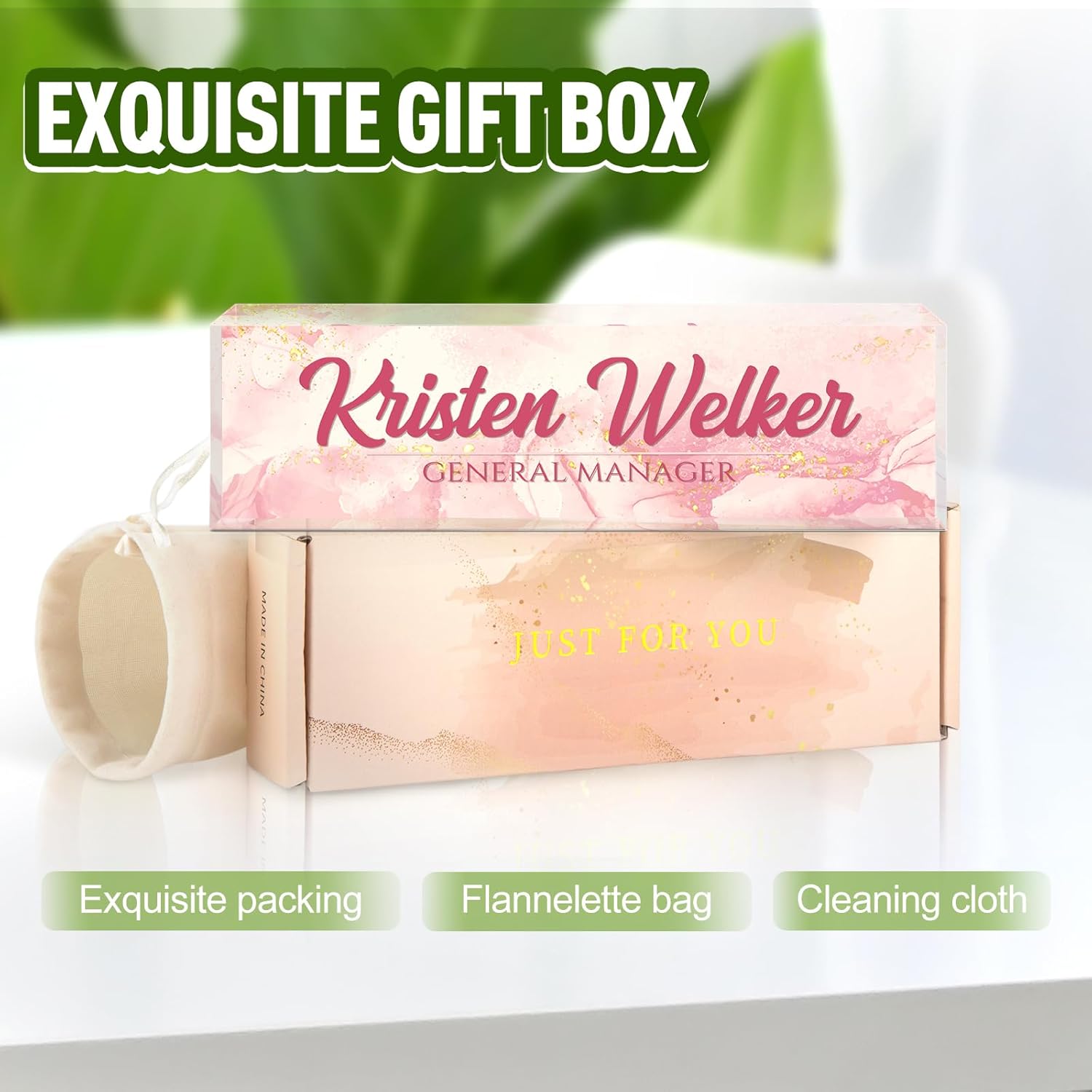 - ✨Personalized Acrylic Desk Name Plate: It's very easy to customize, you only need to choose your favorite design style, and then enter your name/title/company name/good wishes, whatever you want to display. But make sure to enter your custom text the way you want it (uppercase vs. lowercase, full title vs. abbreviation, etc.). Please make sure you write it correctly, we have professional designers to design it, you will be amazed how professional your finished nameplate looks!