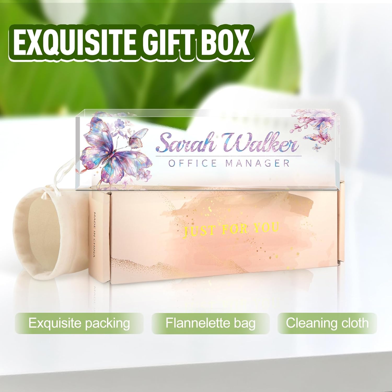 - ✨Personalized Acrylic Desk Name Plate: It's very easy to customize, you only need to choose your favorite design style, and then enter your name/title/company name/good wishes, whatever you want to display. But make sure to enter your custom text the way you want it (uppercase vs. lowercase, full title vs. abbreviation, etc.). Please make sure you write it correctly, we have professional designers to design it, you will be amazed how professional your finished nameplate looks!