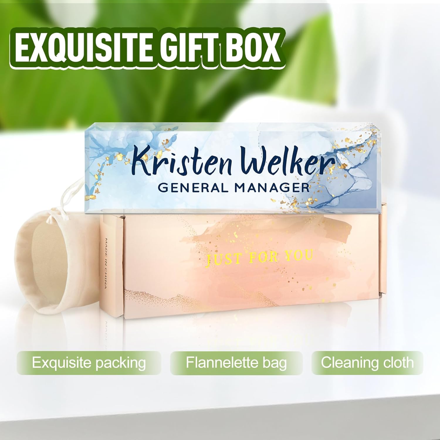 - ✨Personalized Acrylic Desk Name Plate: It's very easy to customize, you only need to choose your favorite design style, and then enter your name/title/company name/good wishes, whatever you want to display. But make sure to enter your custom text the way you want it (uppercase vs. lowercase, full title vs. abbreviation, etc.). Please make sure you write it correctly, we have professional designers to design it, you will be amazed how professional your finished nameplate looks!