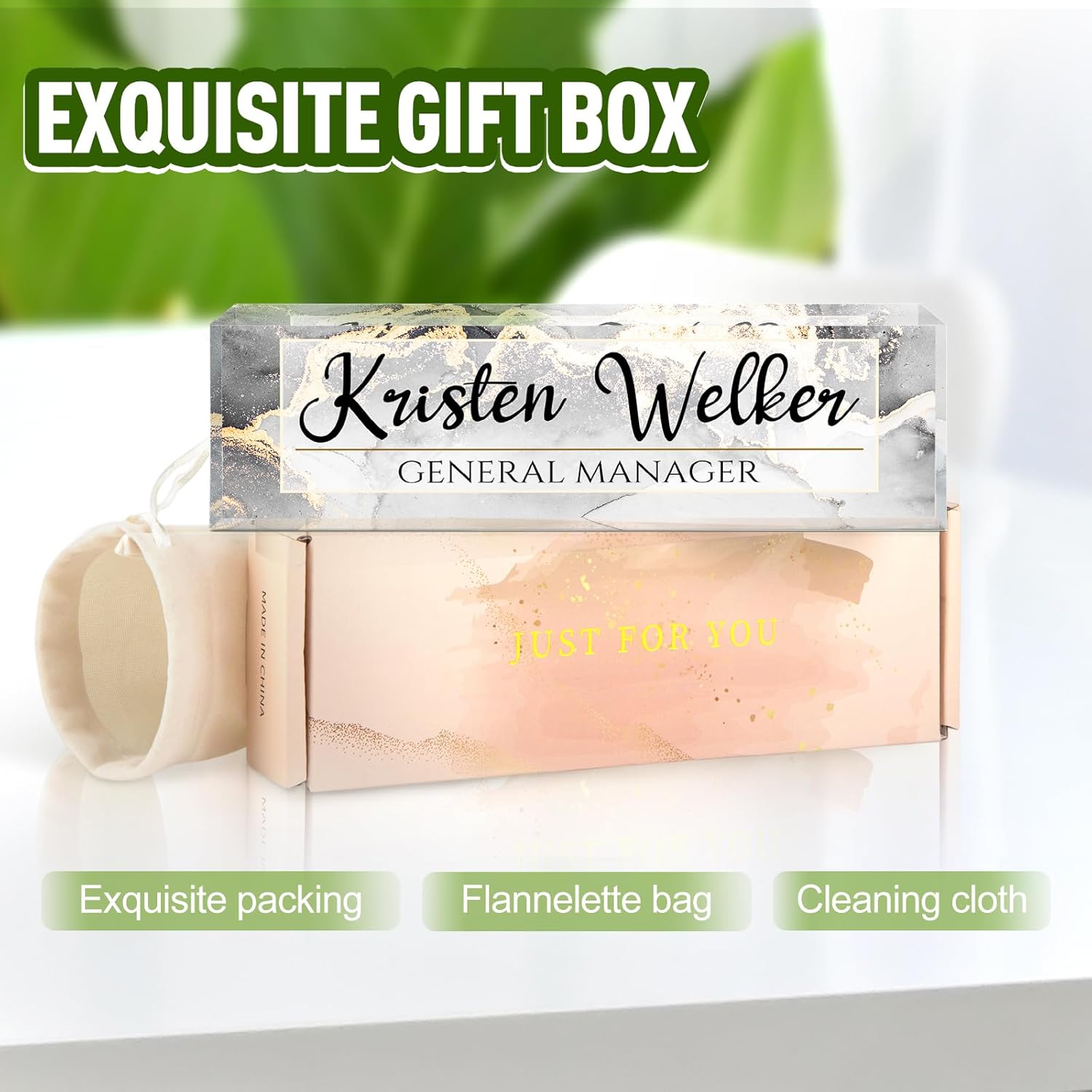 - ✨Personalized Acrylic Desk Name Plate: It's very easy to customize, you only need to choose your favorite design style, and then enter your name/title/company name/good wishes, whatever you want to display. But make sure to enter your custom text the way you want it (uppercase vs. lowercase, full title vs. abbreviation, etc.). Please make sure you write it correctly, we have professional designers to design it, you will be amazed how professional your finished nameplate looks!