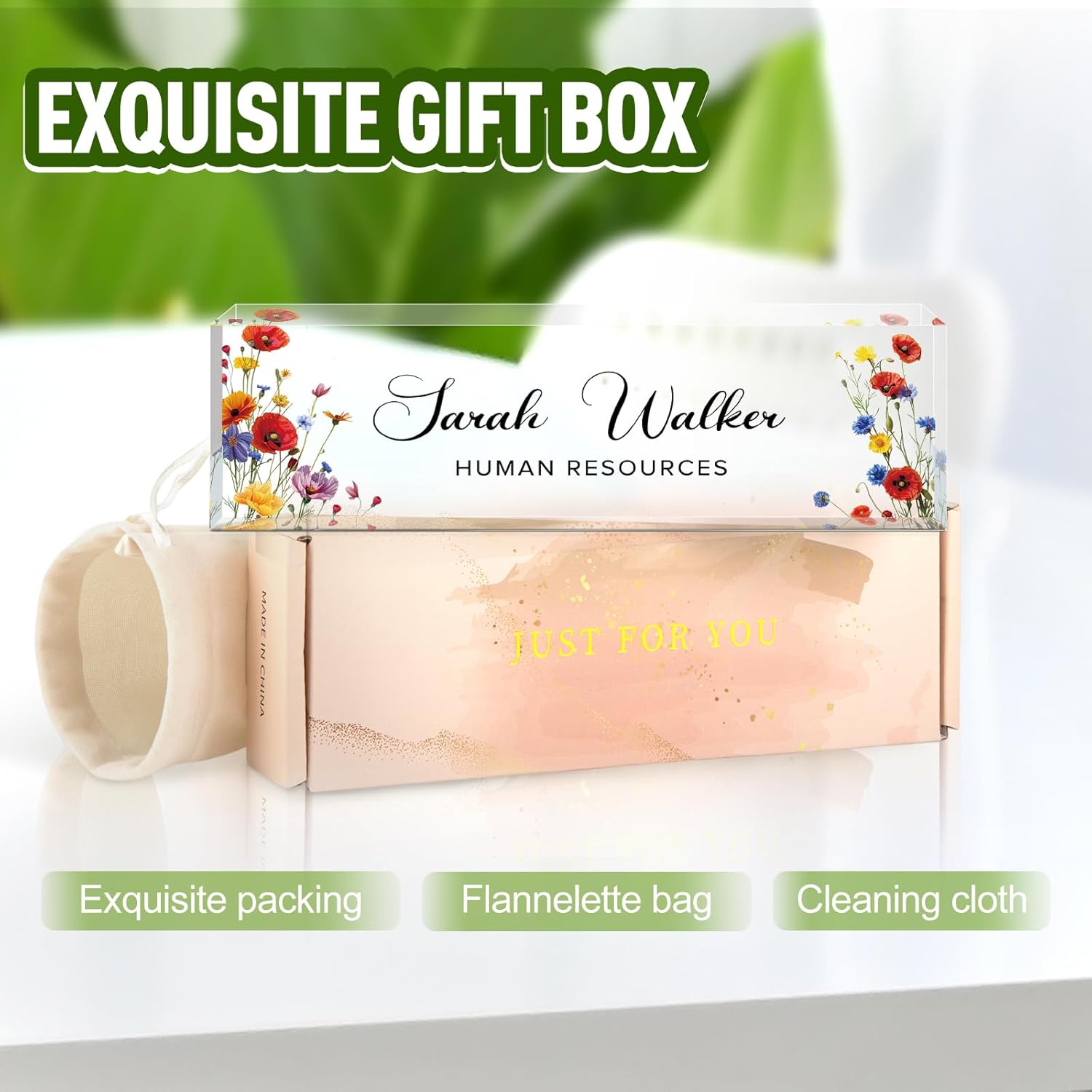 Name Plate for Desk, Desk Name Plate Personalized, Flowers Office Decor for Women Men, Acrylic Desktop Accessories, Office Gifts for Boss Nurse Teacher Coworker, Employee Appreciation Gift (Pink/Blue)