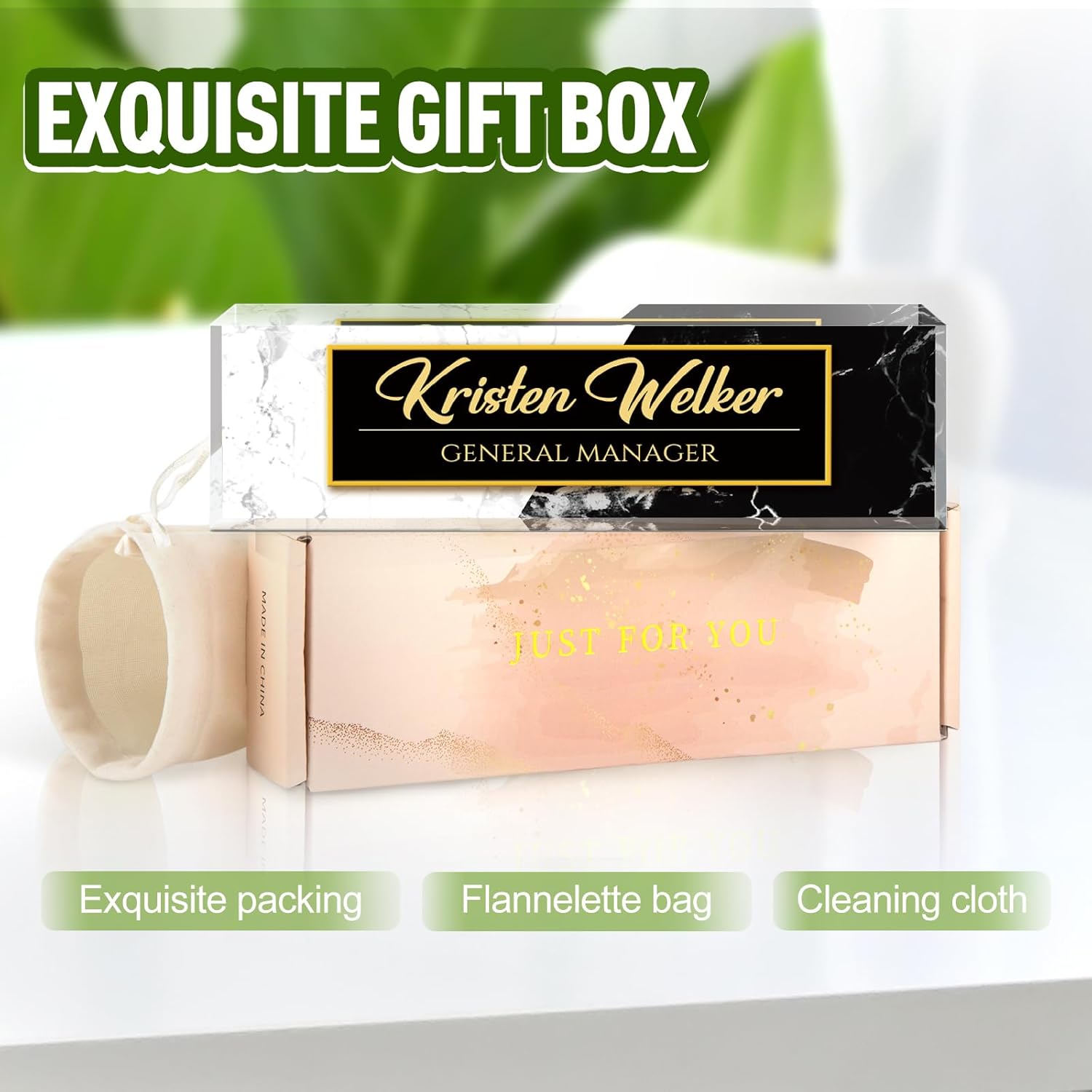 - ✨Personalized Acrylic Desk Name Plate: It's very easy to customize, you only need to choose your favorite design style, and then enter your name/title/company name/good wishes, whatever you want to display. But make sure to enter your custom text the way you want it (uppercase vs. lowercase, full title vs. abbreviation, etc.). Please make sure you write it correctly, we have professional designers to design it, you will be amazed how professional your finished nameplate looks!