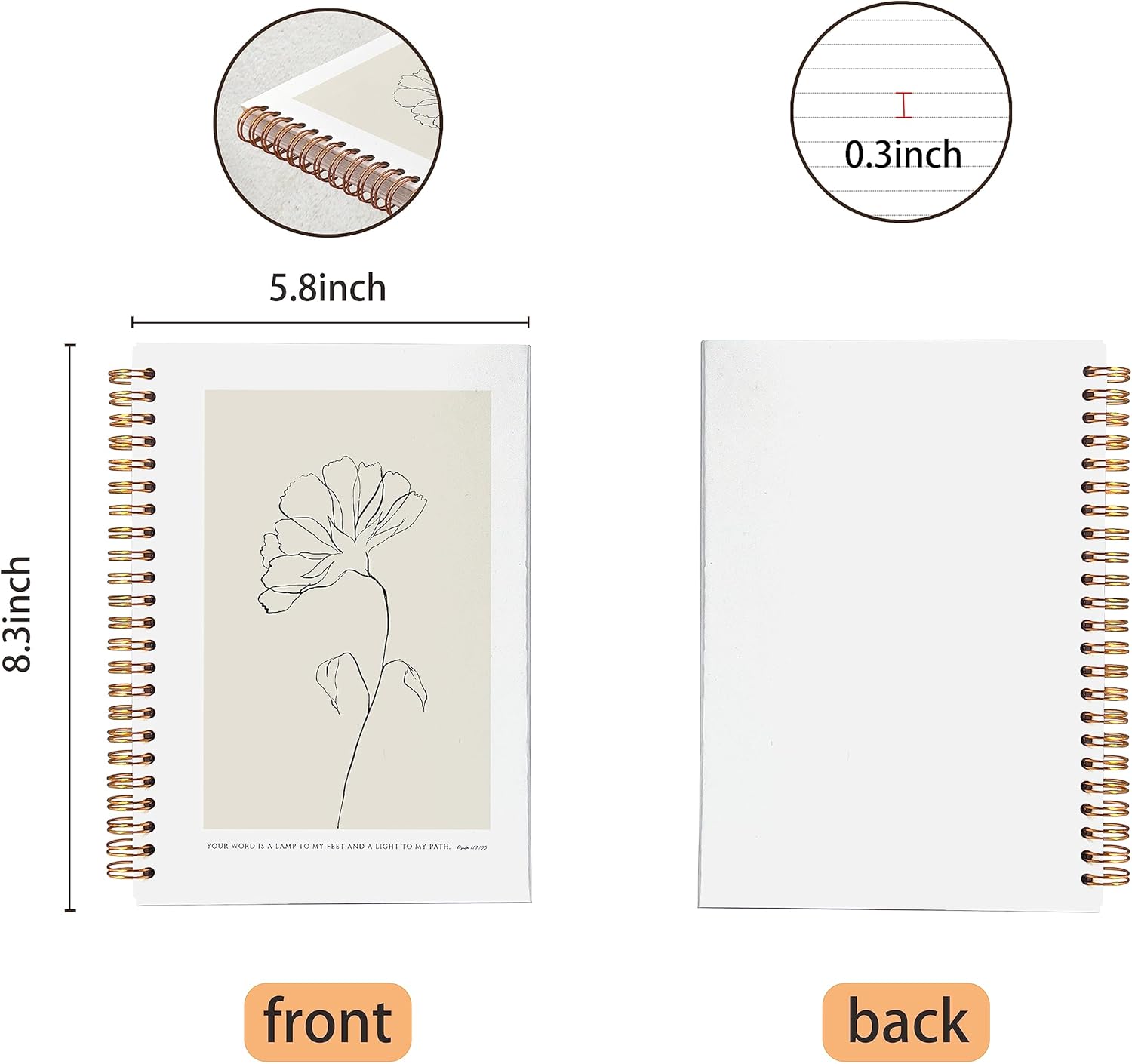 VNWEK Bible Scripture PSALM 119:105 Your Word Is a Lamp to My Feet Boho Botanical Leaf Spiral Notebook Journal 5.5 x 8.3 inches,Christian Lined Hardcover Spiral Notebook,Christian Gifts