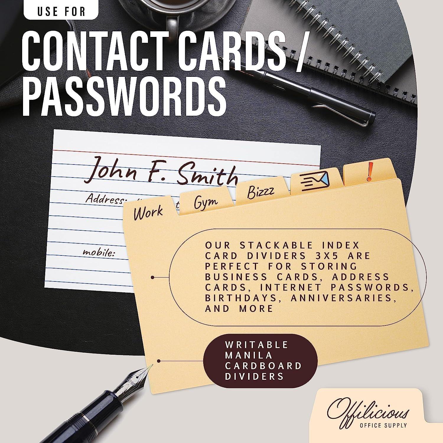 - OTHER MANILA CARD DIVIDERS usually LOSING THEIR SHAPE QUICKLY, leading to messy, frustrating spills. The sturdy Offilicious 3x5 Recipe Card Dividers with Tabs are made with HEAVY-DUTY 100% RECYCLED PAPER materials for a more DURABLE, RELIABLE business card separation usage. Get perfectly organized for a long time!
