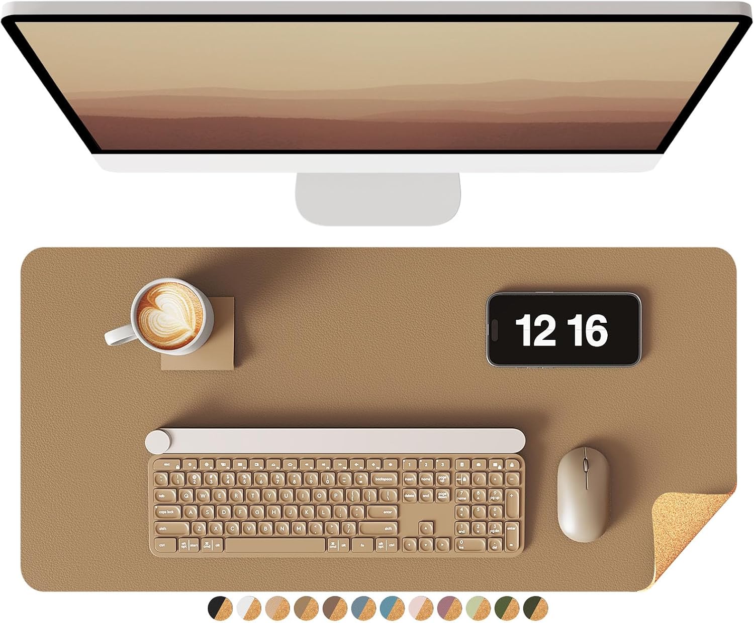 YSAGi Double-Sided Desk Pad, Leather Desk Mat, Eco Cork Desk Pad Protector, Large Mouse Pad for Desk, Waterproof Desk Blotter Pad, Desk Writing Pad for Office Work/Home(23.6"x13.7",Khaki+Cork)