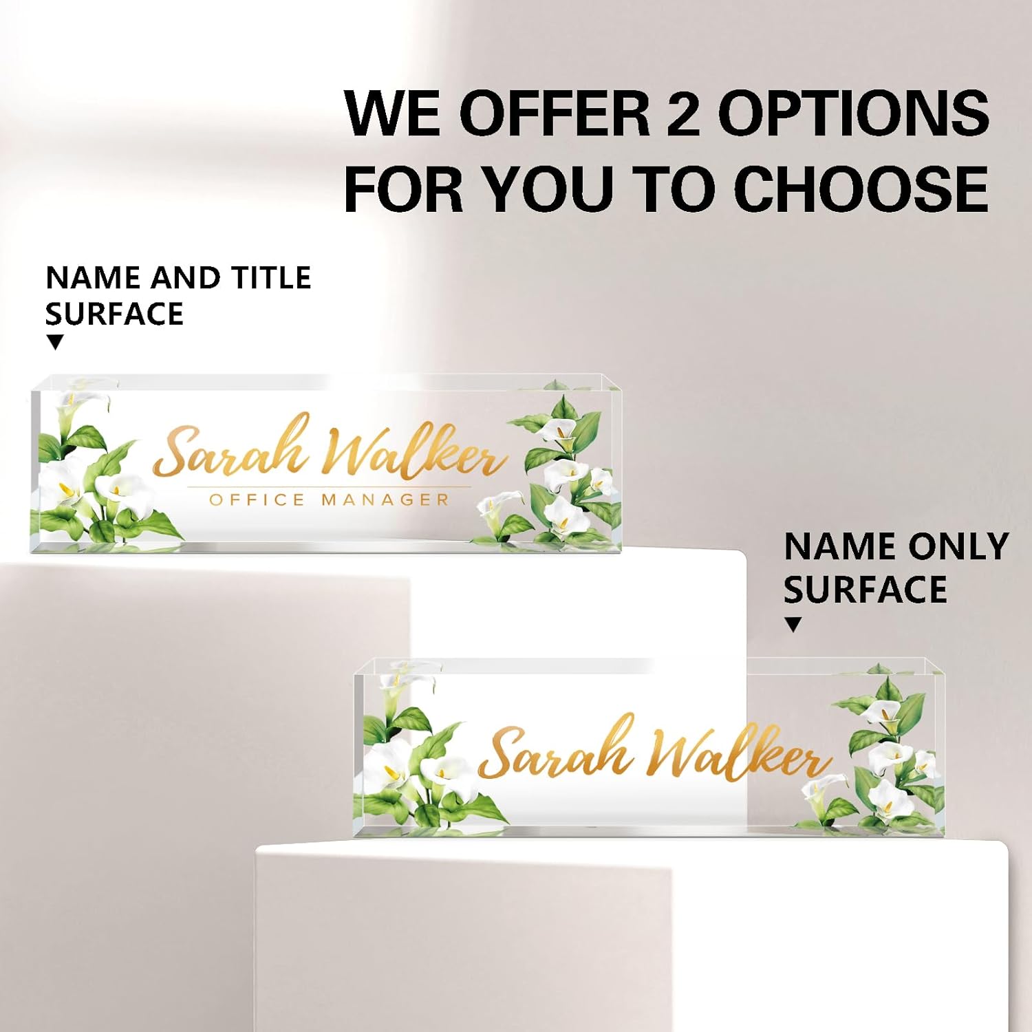 - ✨Personalized Acrylic Desk Name Plate: It's very easy to customize, you only need to choose your favorite design style, and then enter your name/title/company name/good wishes, whatever you want to display. But make sure to enter your custom text the way you want it (uppercase vs. lowercase, full title vs. abbreviation, etc.). Please make sure you write it correctly, we have professional designers to design it, you will be amazed how professional your finished nameplate looks!