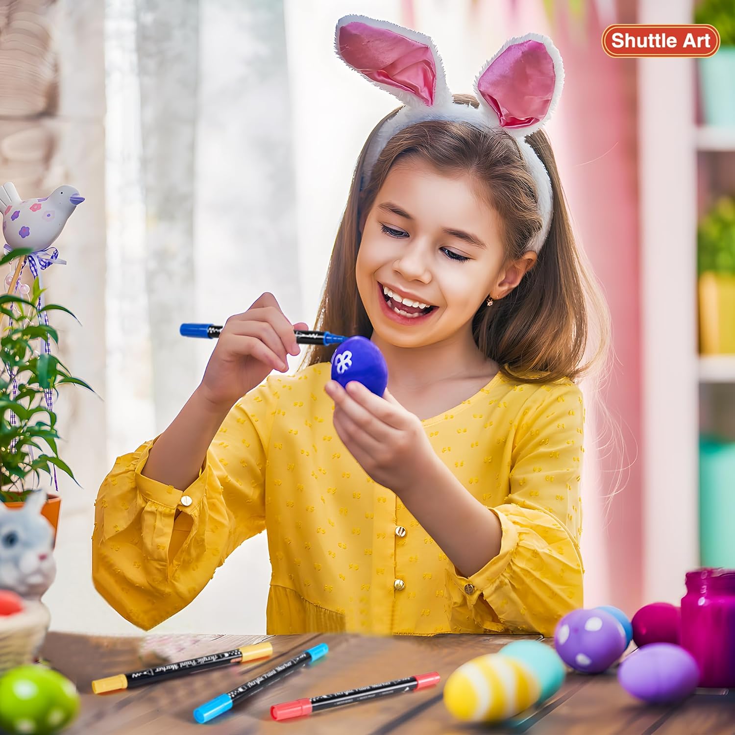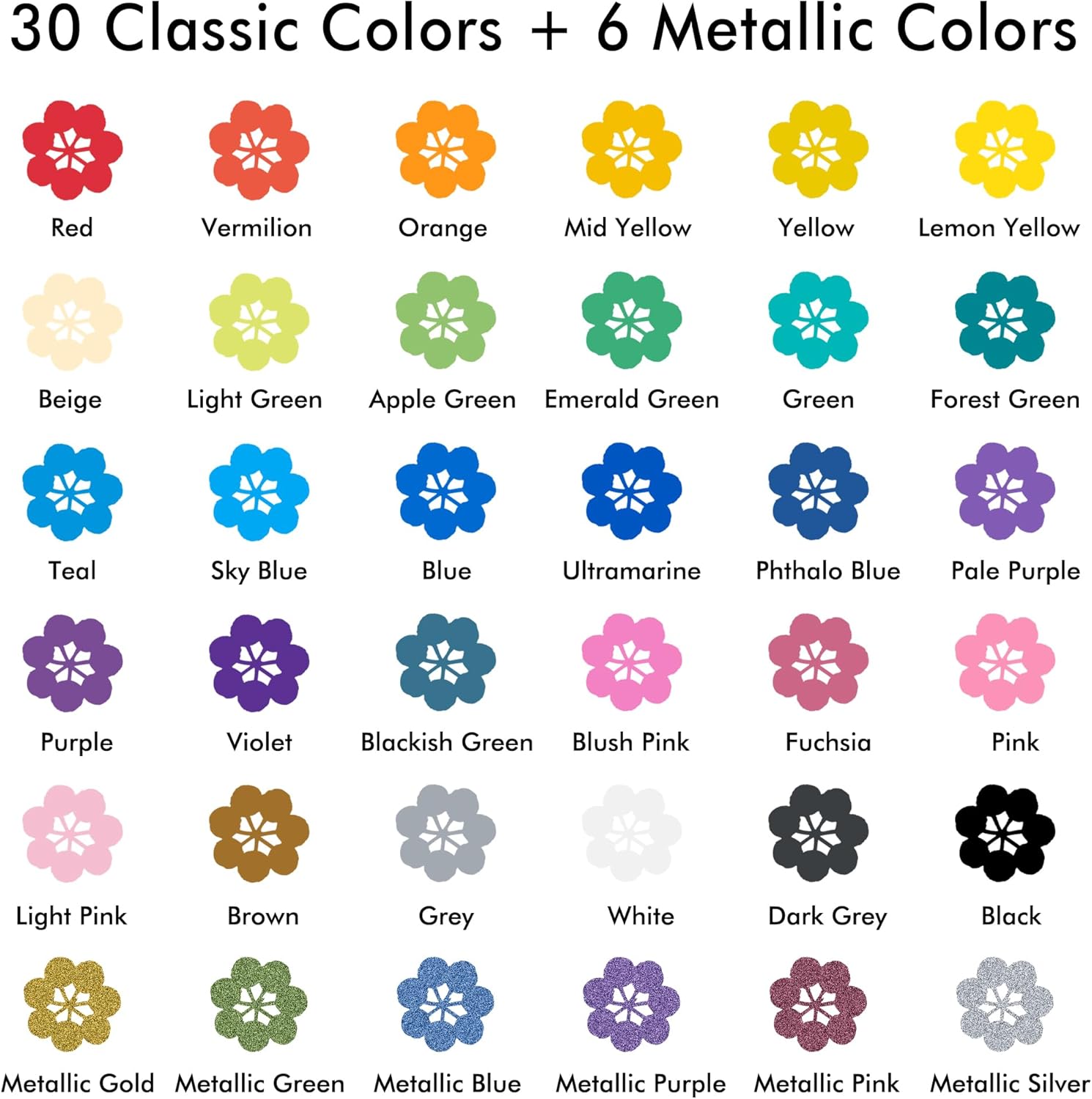 - 【36 UNIQUE AND VIBRANT COLORS】: Shuttle Art 36 acrylic paint markers set contains 30 vibrant colors and 6 cool metallic colors: metallic gold, metallic silver, metallic blue, metallic green,metallic pink,metallic purple.With so much colors, you can almost complete all of your daily creations.