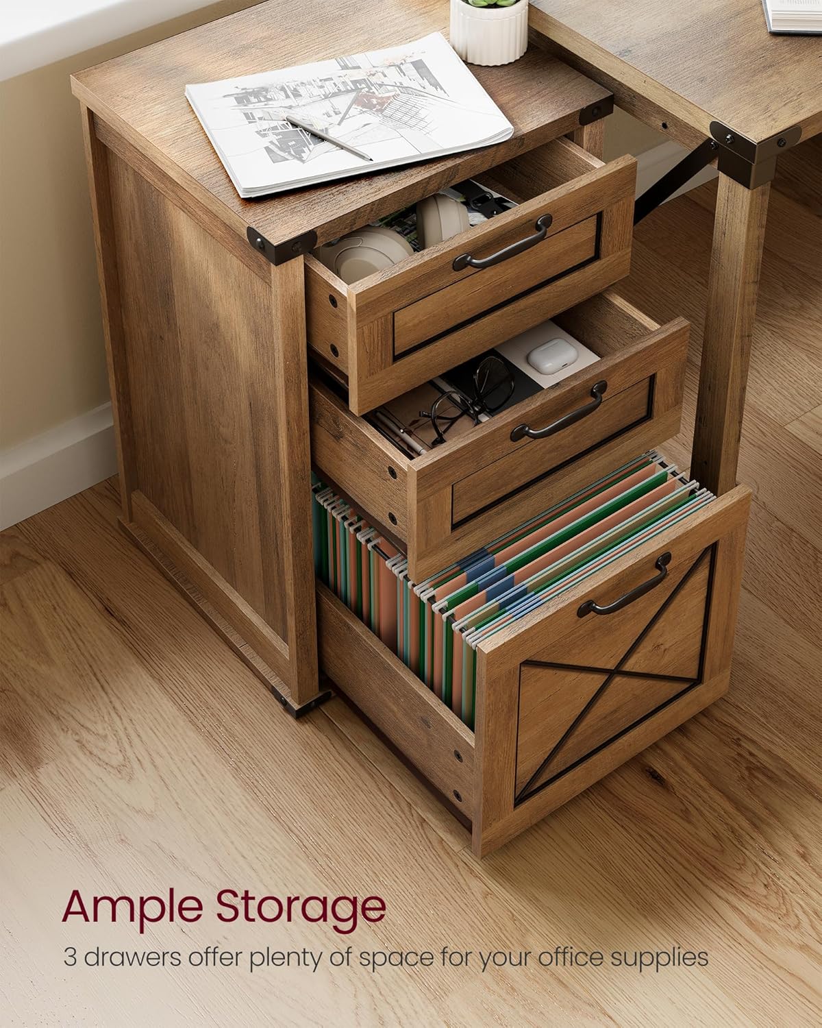 VASAGLE File Cabinet, Filing Cabinet with 3 Drawers, Printer Stand, Fit A4, Letter Size, Hanging File Folders, Modern Farmhouse Style, for Home Office, Honey Brown UOFC054T41
