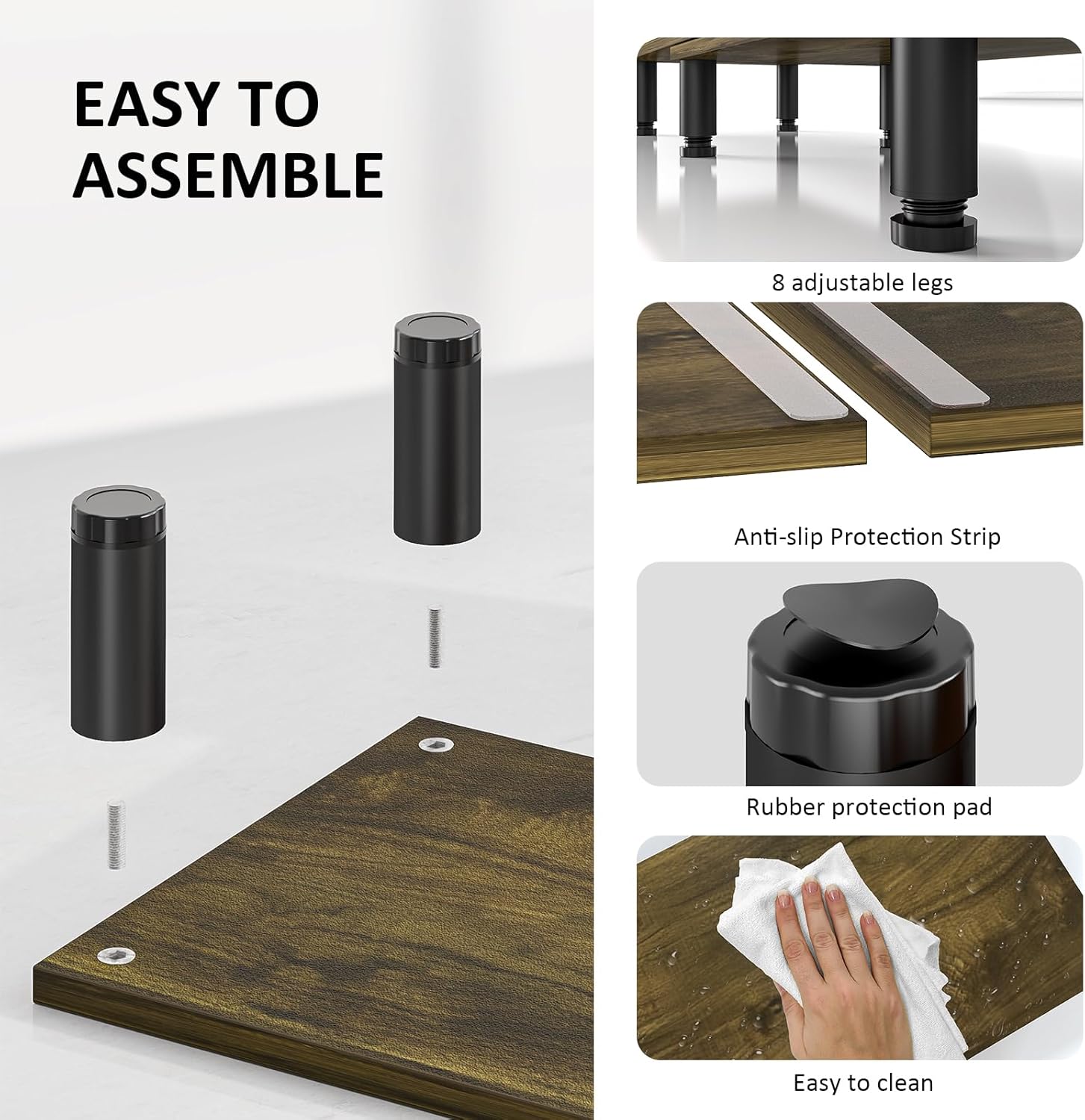 - EASY ASSEMBLE: In just two minutes, you can get a monitor riser that makes your work more comfortable and efficient. Just use screws to assemble the base and steel legs together and attach the 2 side frames to the middle section. Then adjust to the angle you need
