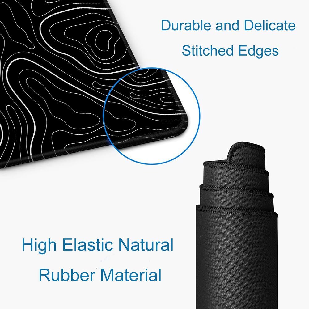 Large Mouse Pad, Extended XL Gaming Mousepad, Non-Slip Rubber Base Keyboard Mouse Mat Desk Pad for Work, Game, Office, Home, 31.5 x 11.8 in, Black Minimalist Topographic Map PL230707021