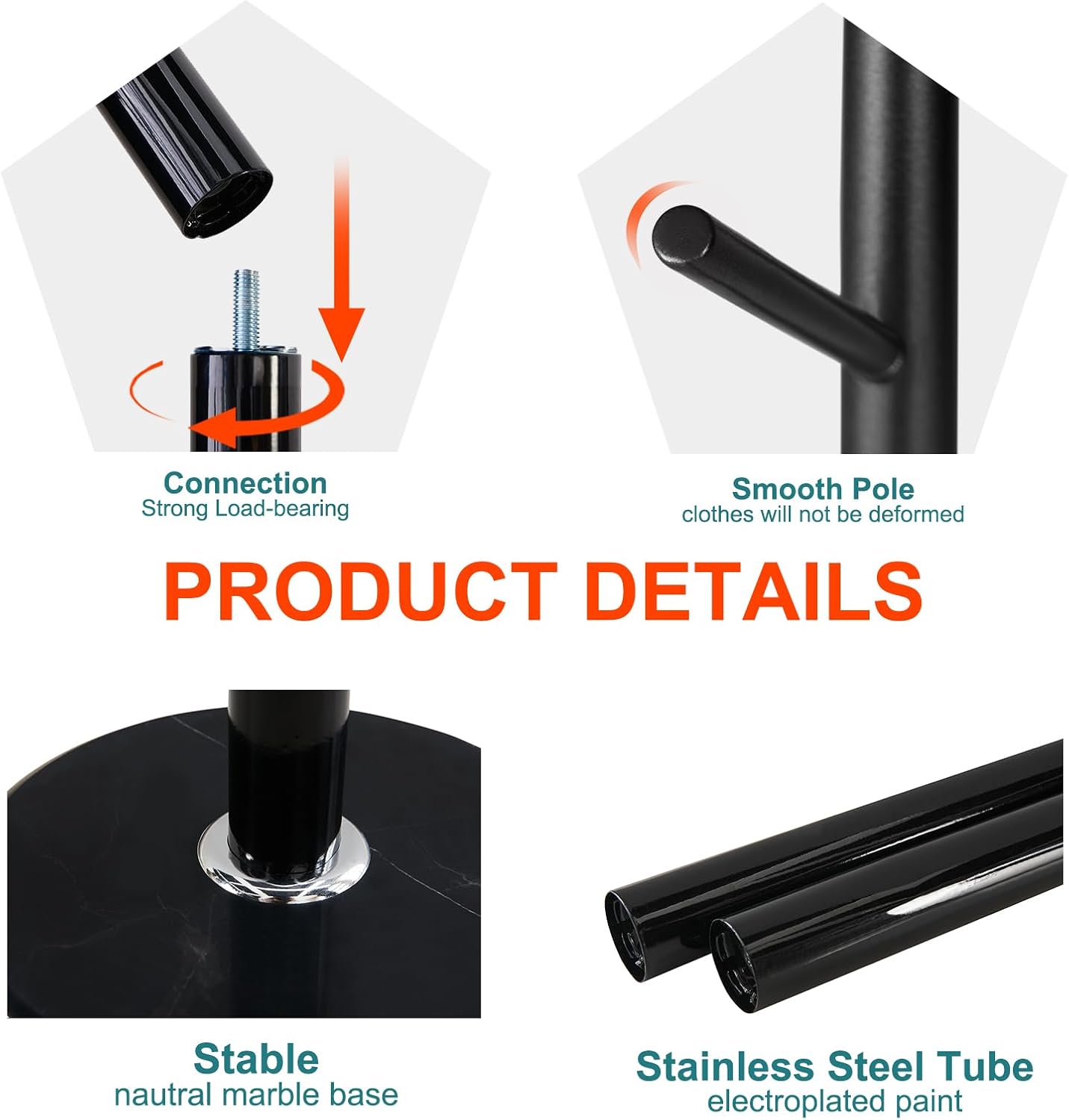 - STAINLESS STEEL FRAME: OIRUMIE coat hanger stand is made of stainless steel. The standing coat rack is not easy to deform and has stronger bearing capacity. The coat rack freestanding adopts advanced nano-baking paint technology, but also is a coat rack with no odor, rust, and bright color
