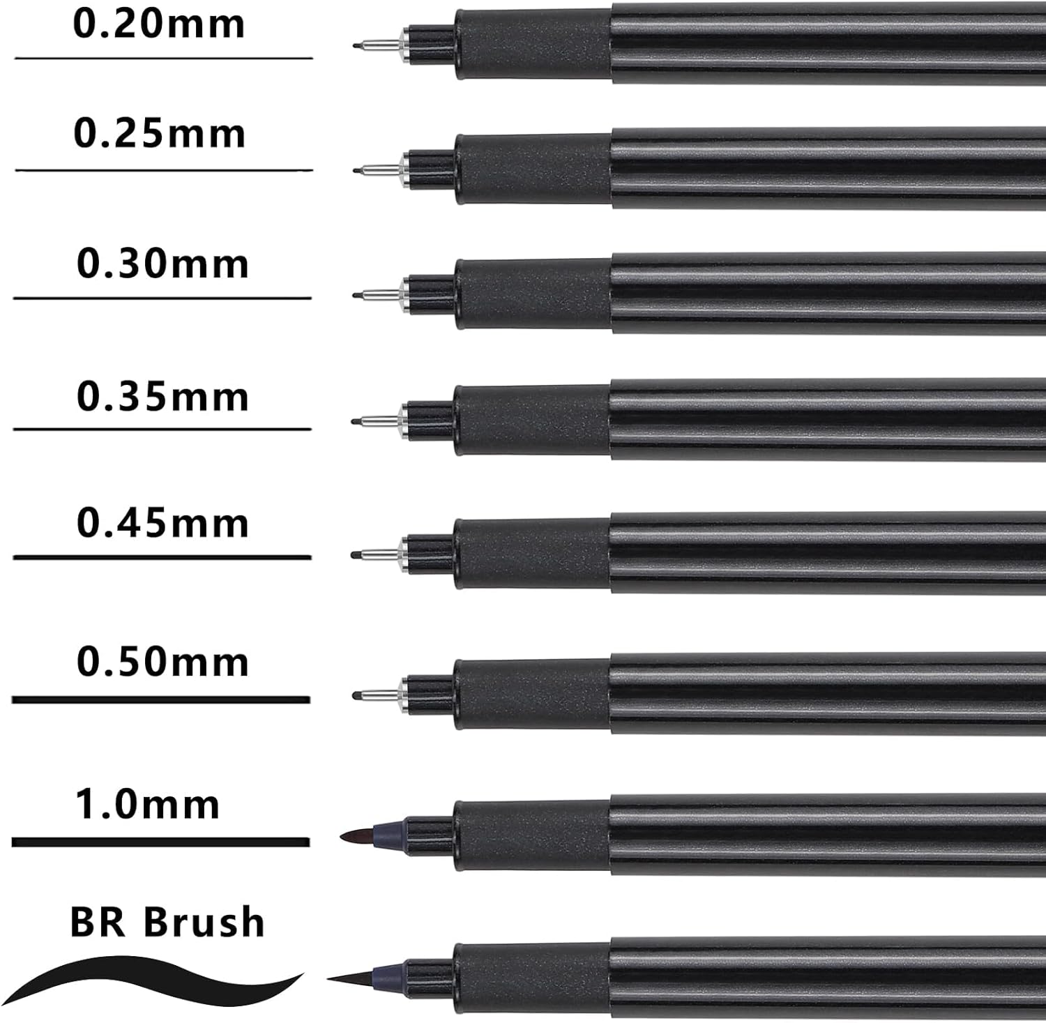 - ❤KOUSICOO 8 Black Drawing Pens: The professional micro pen kit contains assorted types of pen tips from 0.2mm to 3.0mm, plus a brush tip. No Bleed, No Smear and Waterproof. Perfect for drawing and writing. One set of pens for all your art creation needs. Whether you are an artist or a beginner, you can easily use it. Line Width & Cap Size: 0.20mm (005), 0.25mm (01), 0.3mm (02), 0.35mm (03), 0.45mm (04), 0.50mm (05), 0.50mm (06), 1.0mm (1.0), Brush (BR)