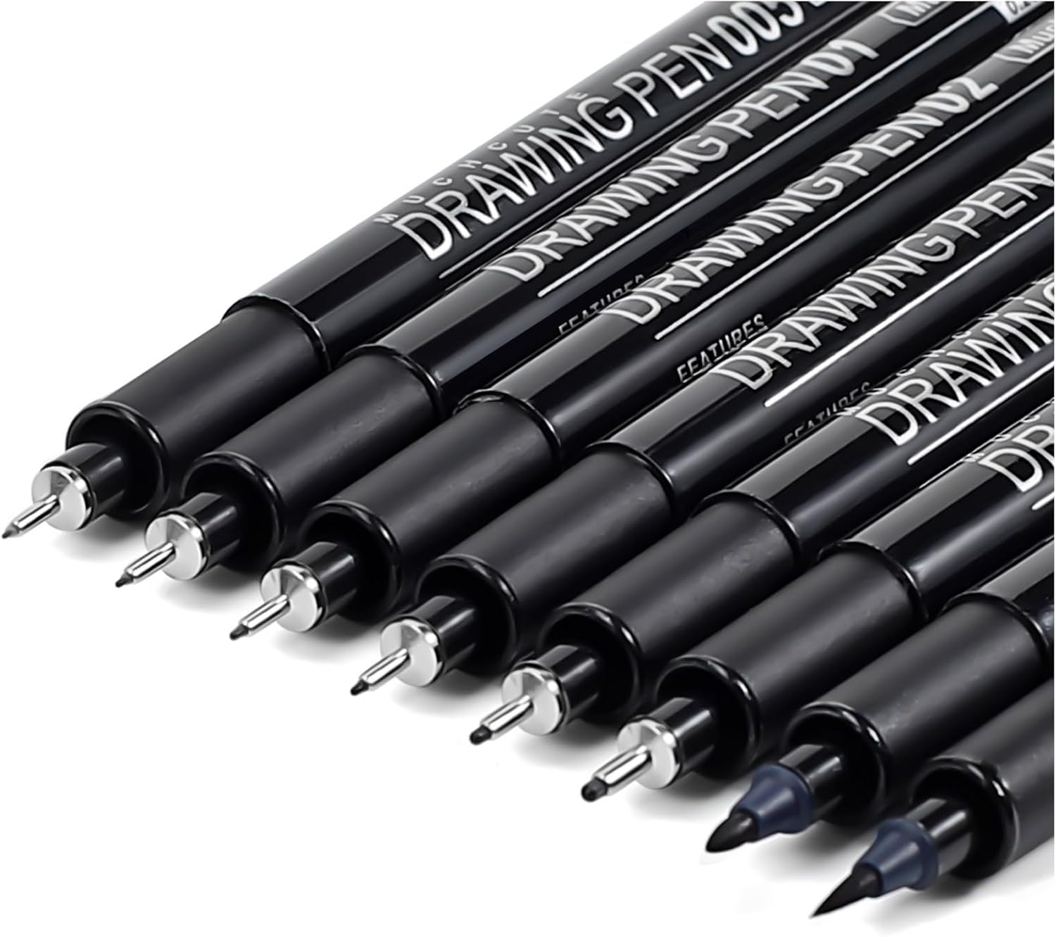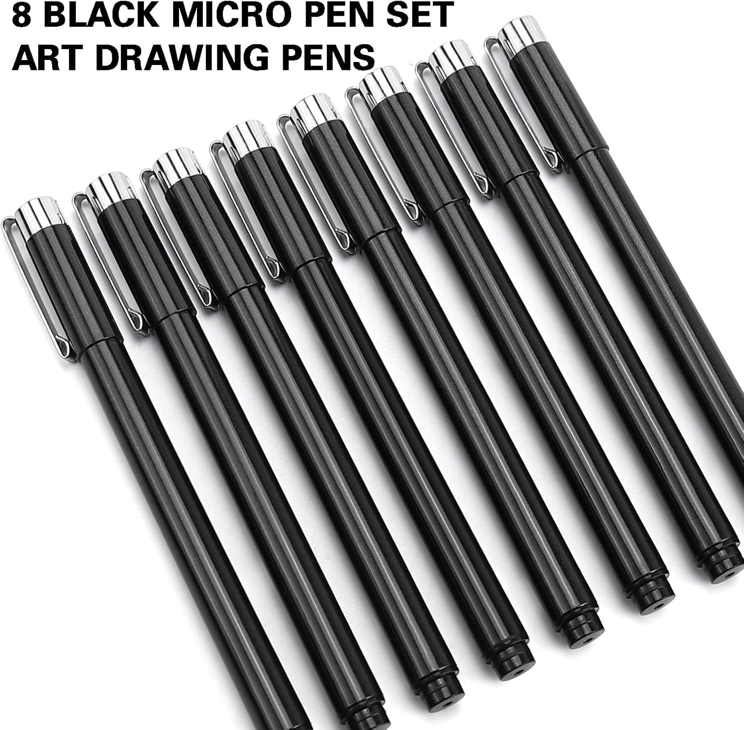 Muchcute Micro Fineliner Drawing Art Pens: 8 Black Fine Line Waterproof Ink Set Artist Supplies Archival Inking Markers Liner Professional Sketch Outline Crafts Sketching Watercolor Zentangle Stuff