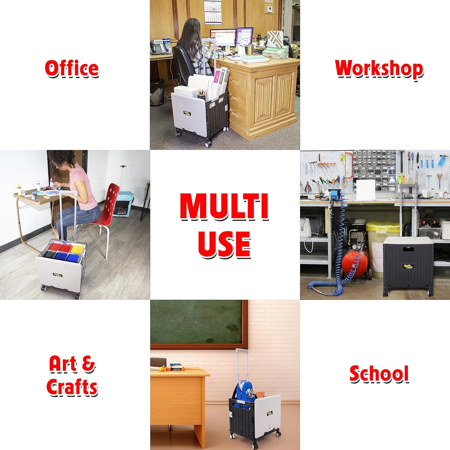 - Collapsible: Folds down to only 3-inches thick for compact storage weighing less than 8-pounds. ideal for groceries, milk Rolling totes, pull cart and plastic crate are ideal file organizers, rolling utility cart, and pull cart.
