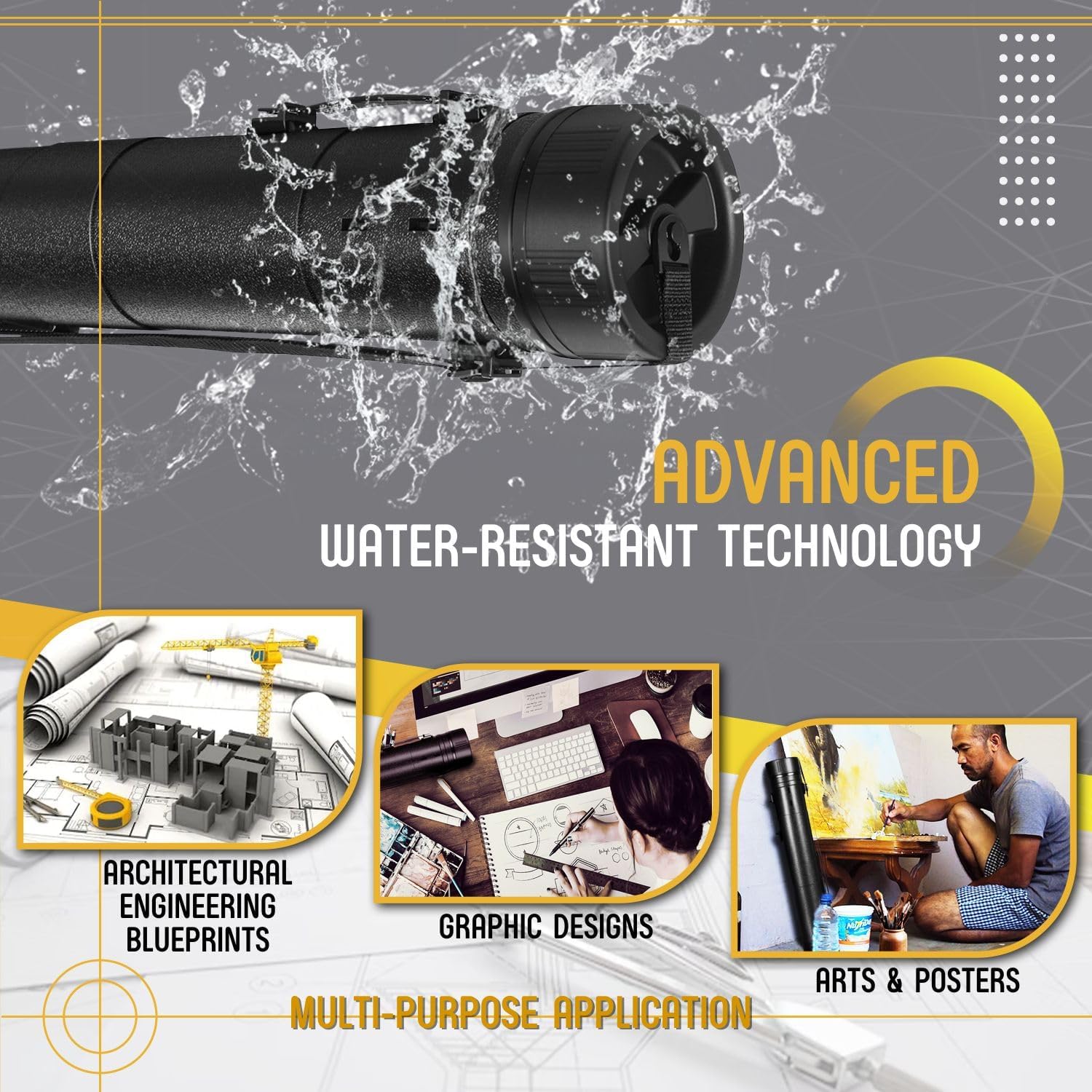 - Extendable (31.7" min -51.2" max) Length: The adjustable 4.7 Inch inside diameter poster tube including 10 locking positions provides large internal storage space and high flexibility for users. Great for storing drawings, maps, blueprints, engineering supplies, surveying equipments & more!