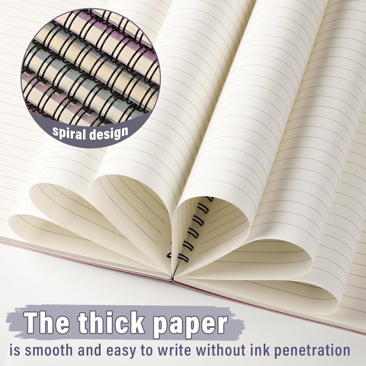 - Smooth to Write: each spiral journal notebook has 60 sheets (120 pages), and each page adopts quality 80gsm white paper, smooth and easy to write, preventing ink infiltrating into the next page, and mild colors can avoid eye fatigue and bring comfortable experience