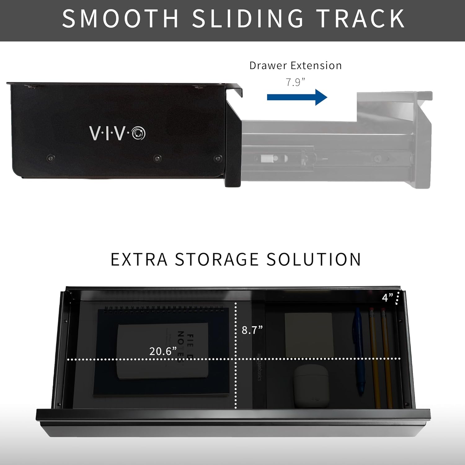 - Under Desk Storage: Sturdy steel drawer mounts to the underside of your desk (at least 3/4β thick) and provides extra storage space for decluttering your area in style. Designed to fit both standing desks and standard fixed-height workstations