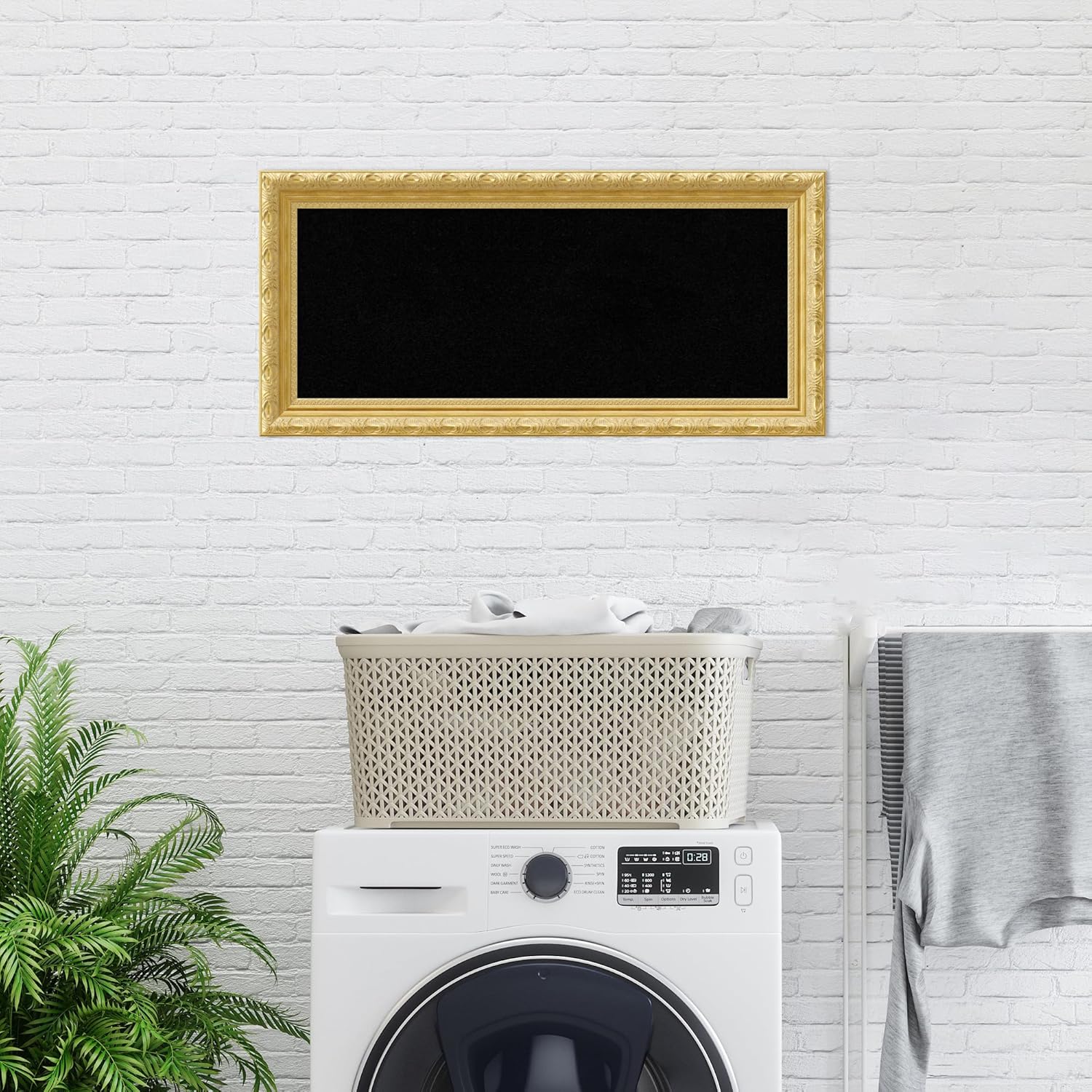 Amanti Art Black Cork Board for Wall, 16x34 Vision Board with Gold Wood Frame, Medium Corkboard Office Decor for Home Organization, Traditional Corkboard Pinboard to Display Items for Home