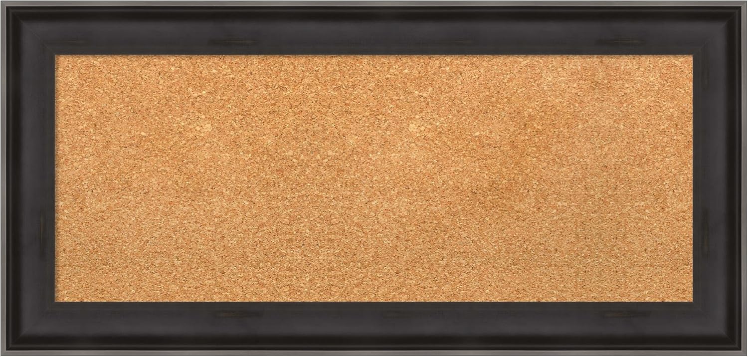 Amanti Art Natural Cork Board for Wall, 16x34 Vision Board with Black Wood Frame, Medium Corkboard Office Decor for Home Organization, Casual Corkboard Pinboard to Display Items for Home Organization