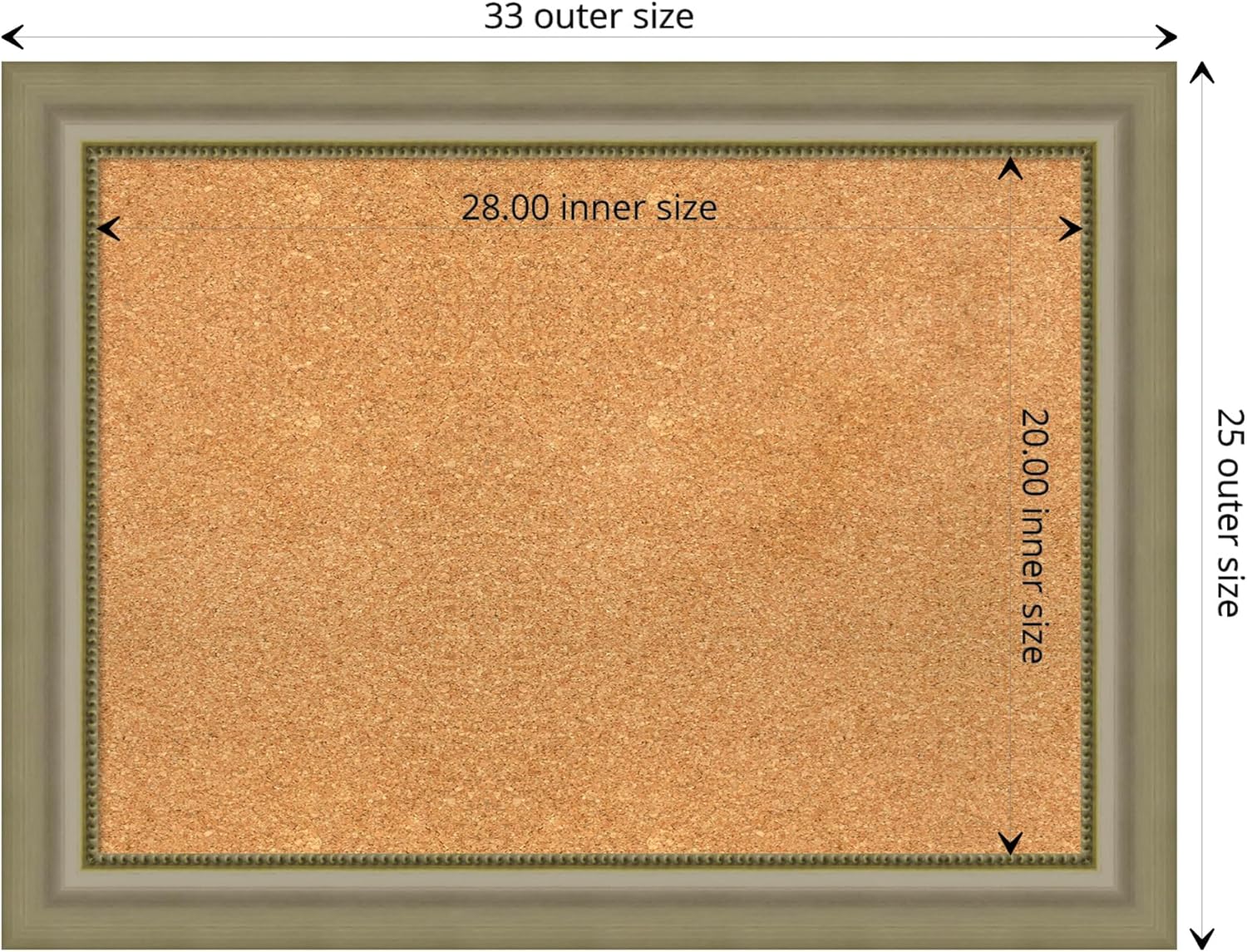 - DIMENSIONS: The overall size of this framed corkboard measures 33 in. x 25 in., including the frame. Its functional cork board area measures 28 in. x 20 in.