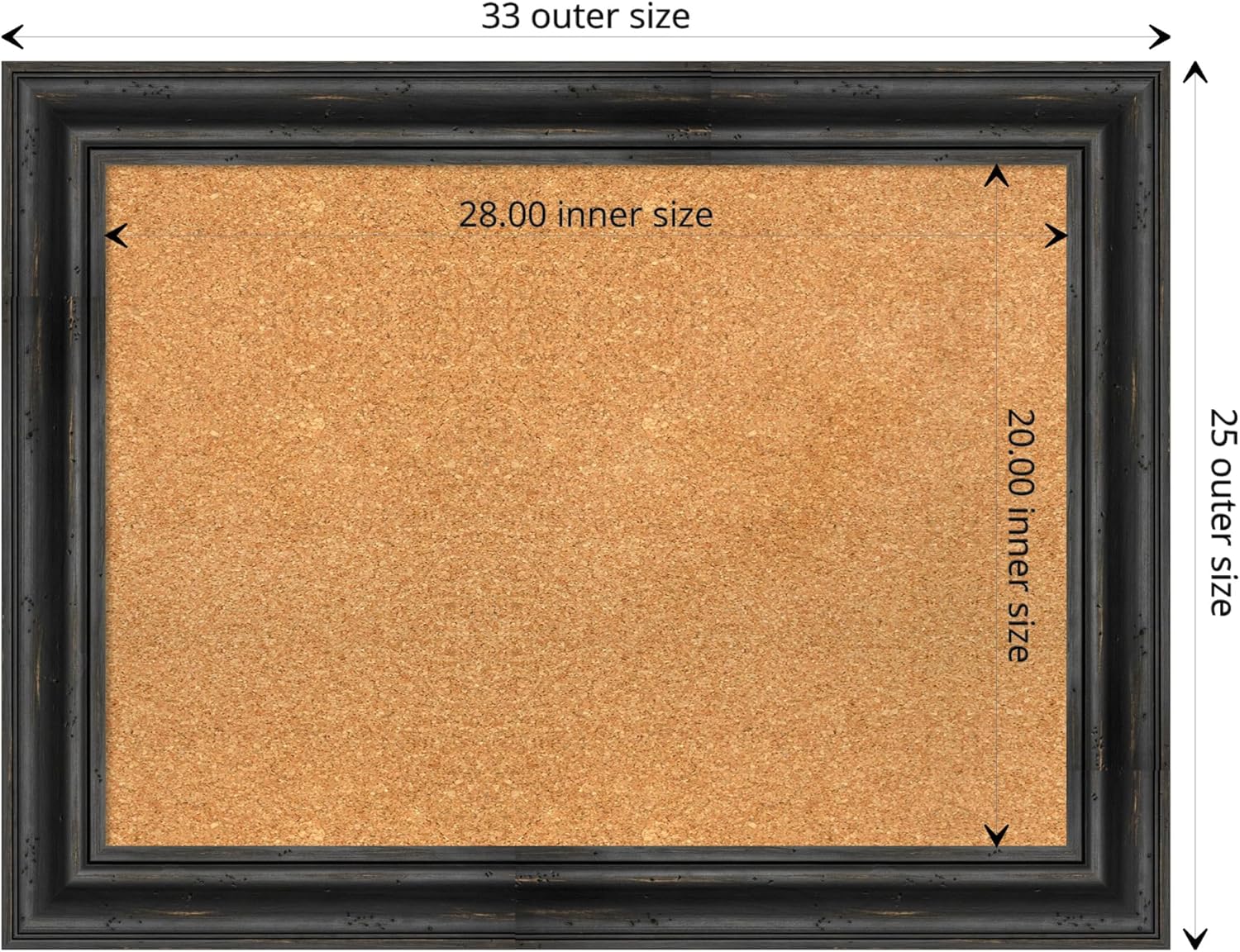 Amanti Art Natural Cork Board for Wall, 25x33 Vision Board with Black Wood Frame, Medium Corkboard Office Decor for Home Organization, Rustic Farmhouse Corkboard Pinboard to display items for home