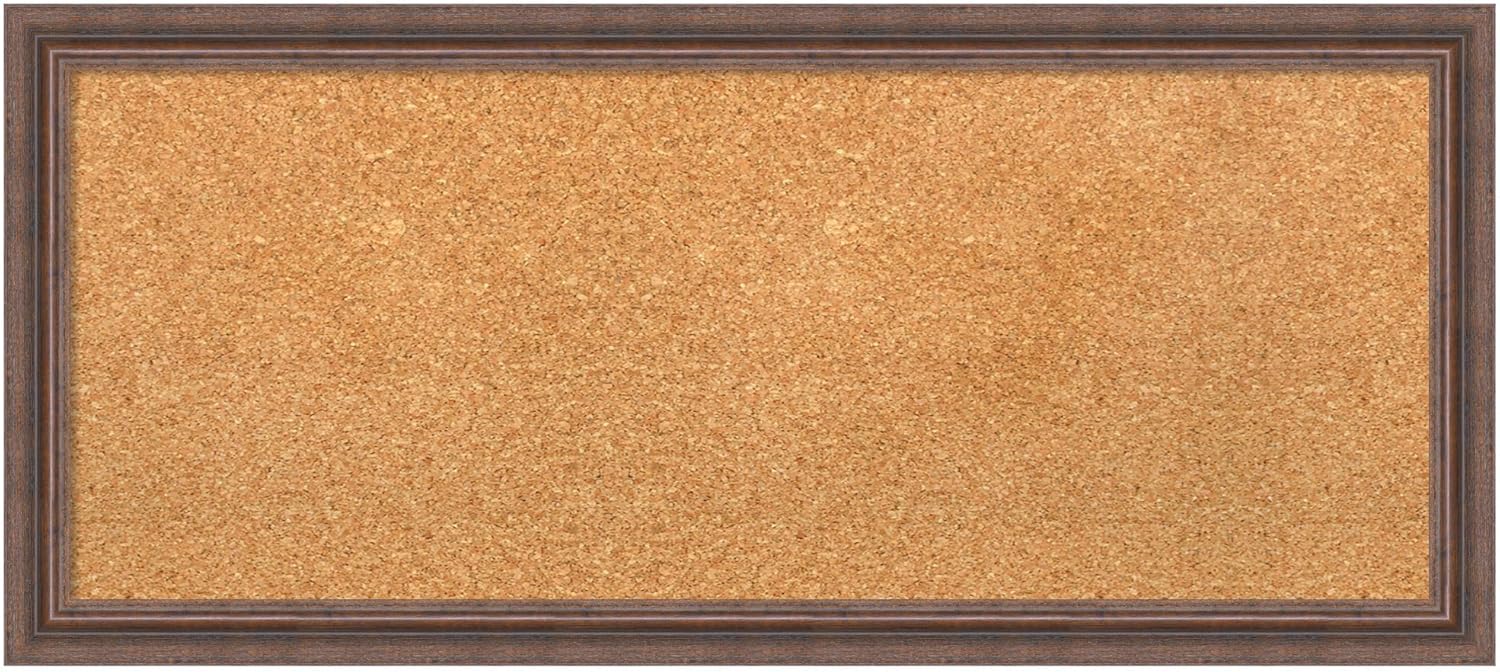 Amanti Art Natural Cork Board for Wall, 14x32 Vision Board with Brown Wood Frame, Medium Corkboard Office Decor for Home Organization, Country Rustic Corkboard Pinboard to Display Items for Home