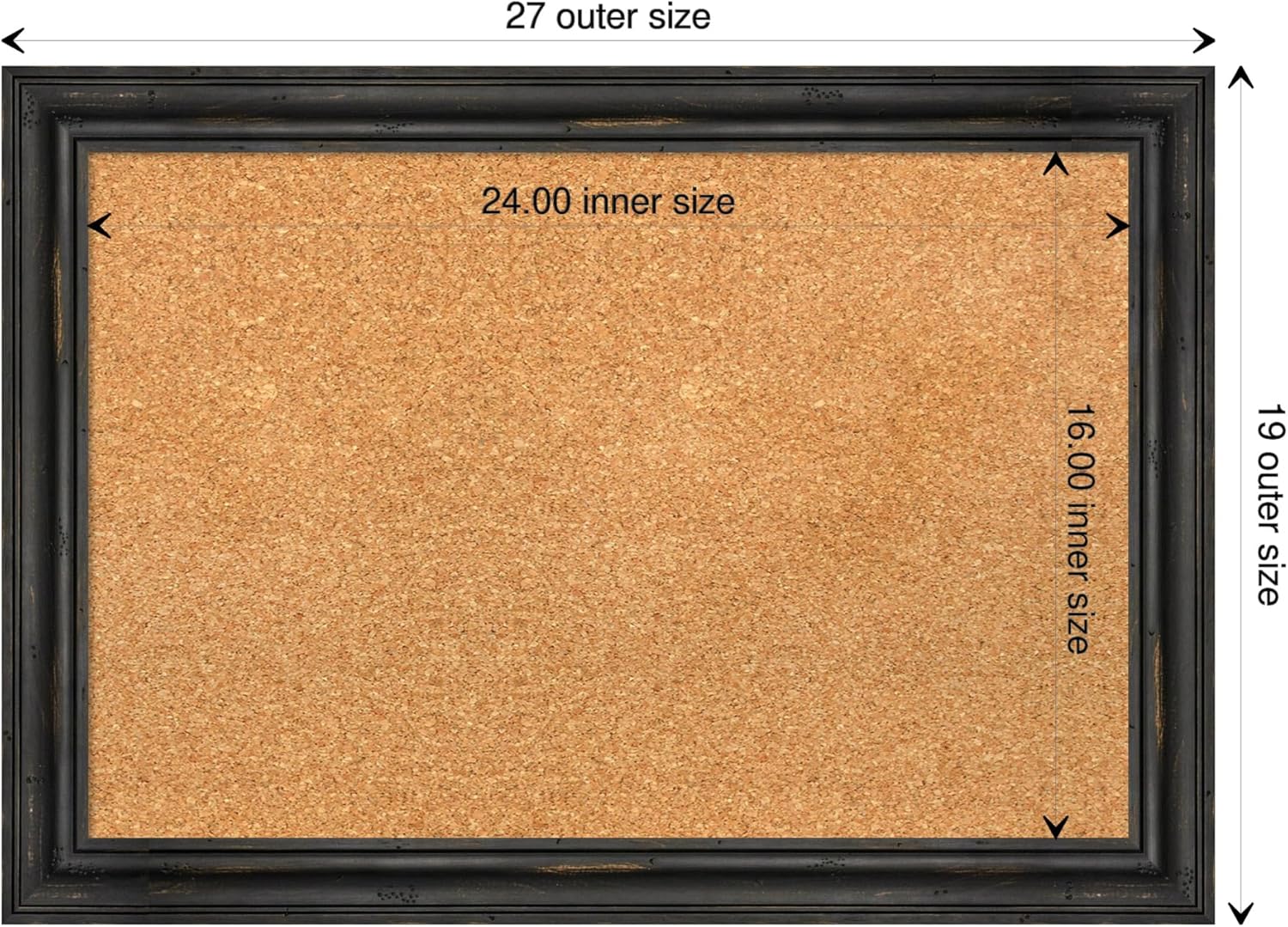 - DIMENSIONS: The overall size of this framed corkboard measures 27 in. x 19 in., including the frame. Its functional cork board area measures 24 in. x 16 in.