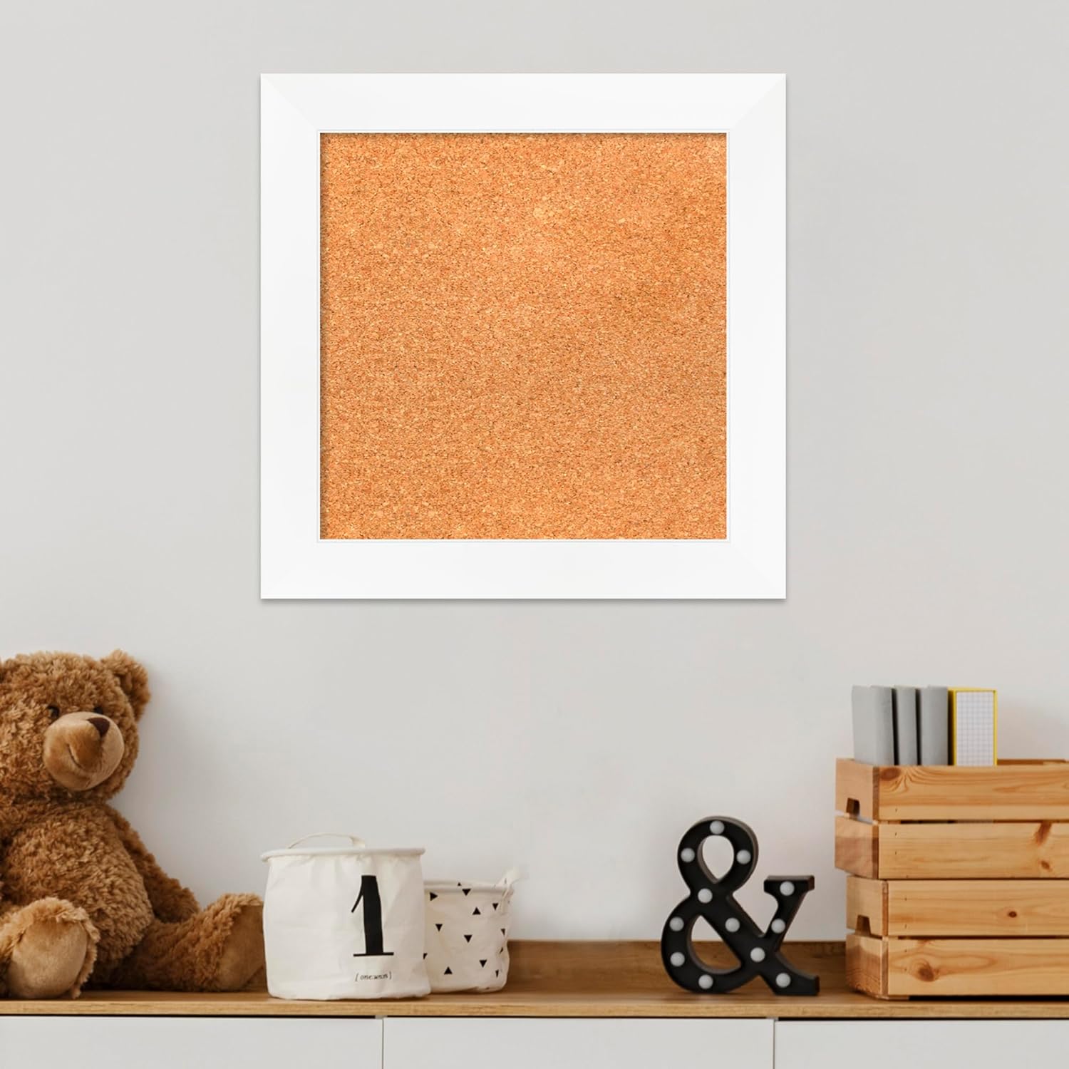Amanti Art Natural Cork Board for Wall, 17x17 Vision Board with White Frame, Small Corkboard Office Decor for Home Organization, Modern Corkboard Pinboard to Display Items for Home Organization in
