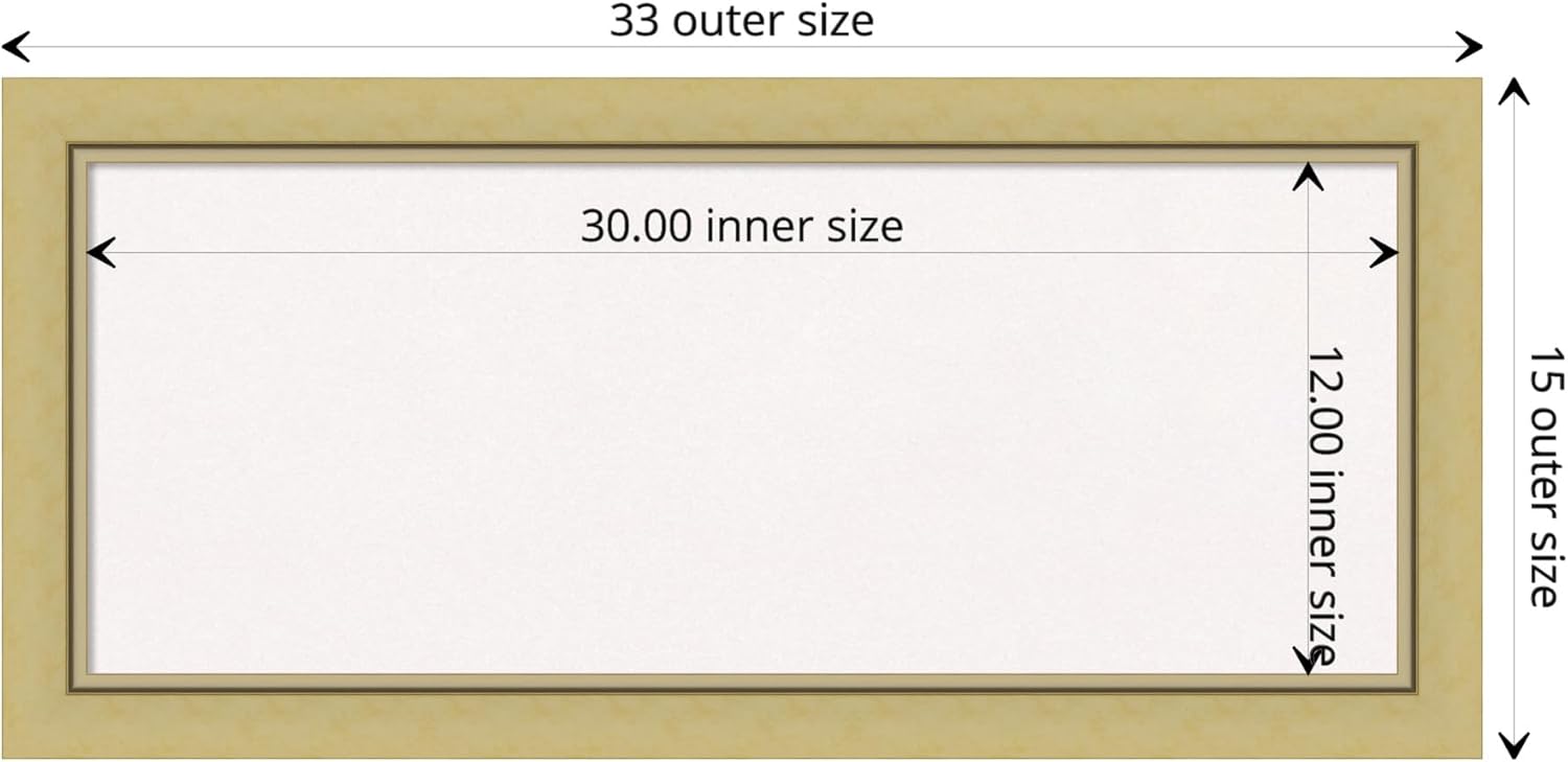 - DIMENSIONS: The overall size of this framed cork board measures 33 in. x 15 in., including the frame. Its functional cork board area measures 30 in. x 12 in.