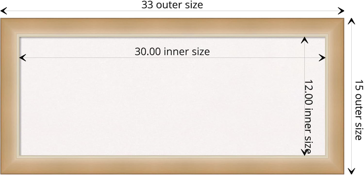 - DIMENSIONS: The overall size of this framed cork board measures 33 in. x 15 in., including the frame. Its functional cork board area measures 30 in. x 12 in.