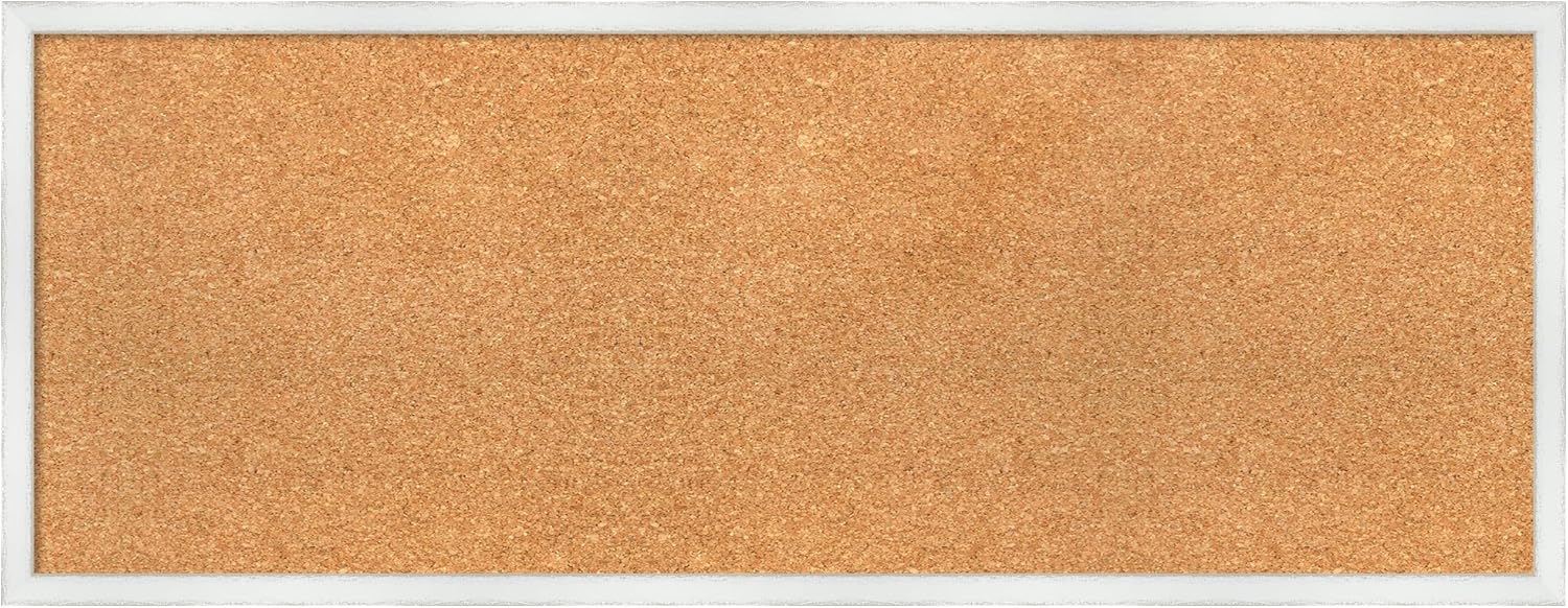 Amanti Art Natural Cork Board for Wall, 15x39 Vision Board with White Frame, Medium Corkboard Office Decor for Home Organization, Country Rustic Corkboard Pinboard to Display Items for Home