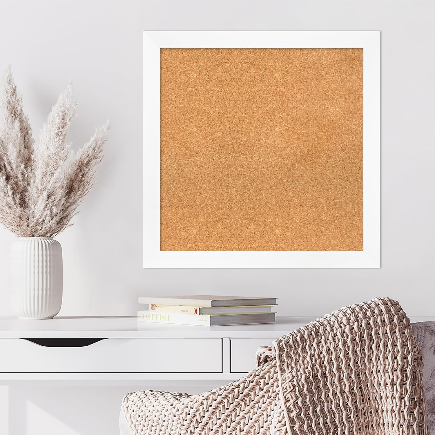 Amanti Art Natural Cork Board for Wall, 27x27 Vision Board with White Frame, Medium Corkboard Office Decor for Home Organization, Modern Corkboard Pinboard to Display Items for Home Organization in