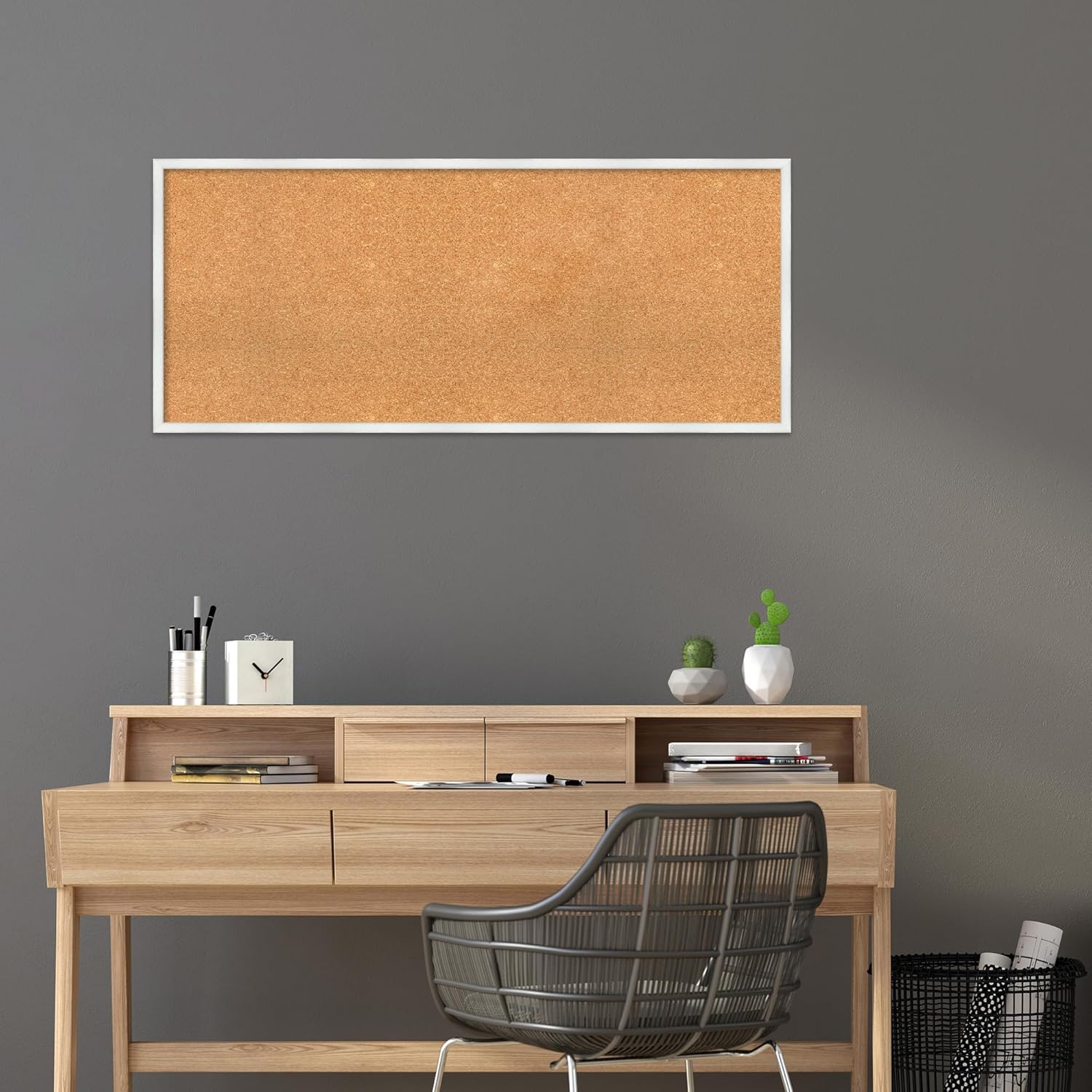 - DIMENSIONS: The overall size of this framed corkboard measures 49 in. x 21 in., including the frame. Its functional cork board area measures 48 in. x 20 in.