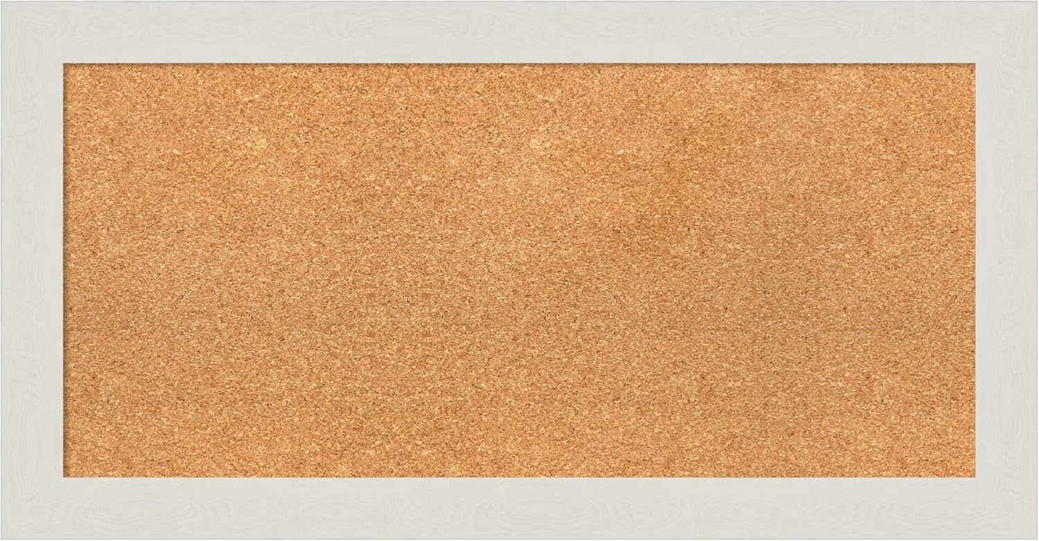 Amanti Art Natural Cork Board for Wall, 17x33 Vision Board with White Frame, Medium Corkboard Office Decor for Home Organization, Country Rustic Corkboard Pinboard to Display Items for Home