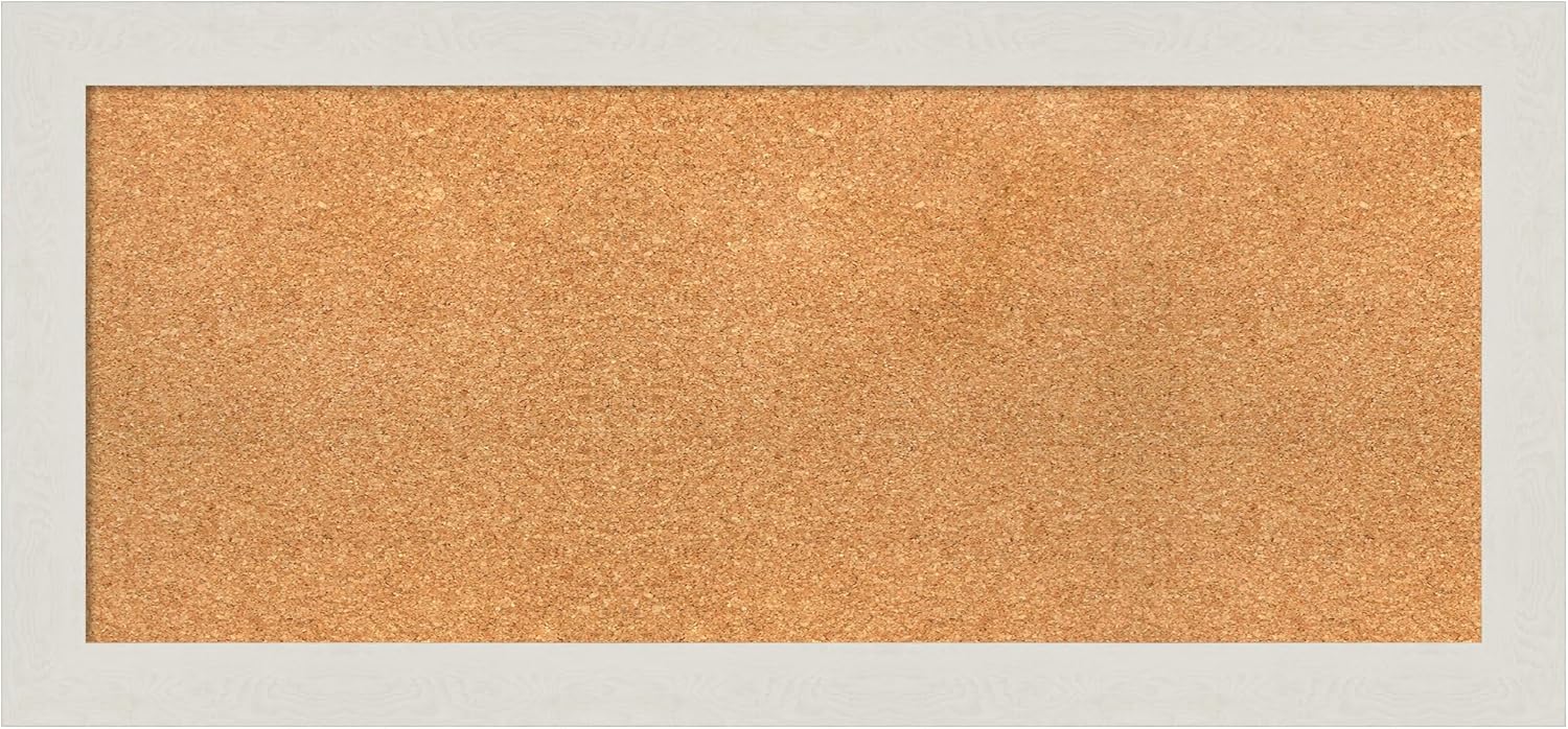 Amanti Art Natural Cork Board for Wall, 17x37 Vision Board with White Frame, Medium Corkboard Office Decor for Home Organization, Country Rustic Corkboard Pinboard to Display Items for Home