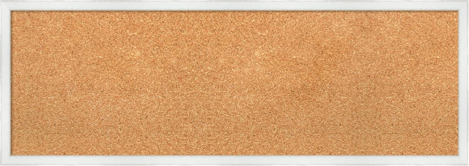Amanti Art Natural Cork Board for Wall, 13x37 Vision Board with White Frame, Medium Corkboard Office Decor for Home Organization, Country Rustic Corkboard Pinboard to Display Items for Home